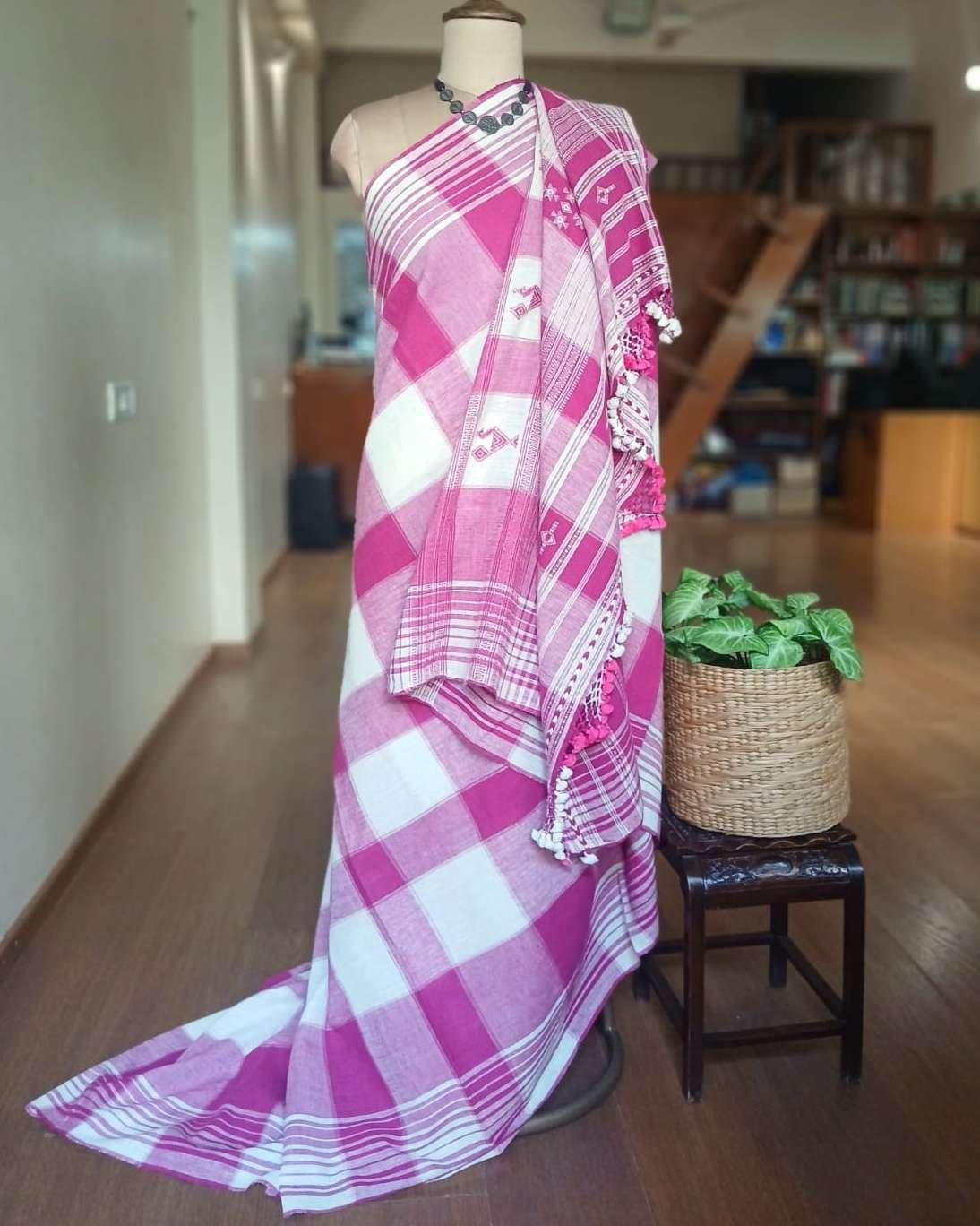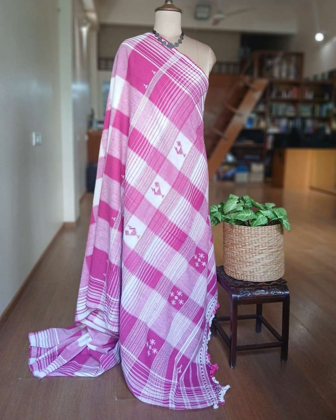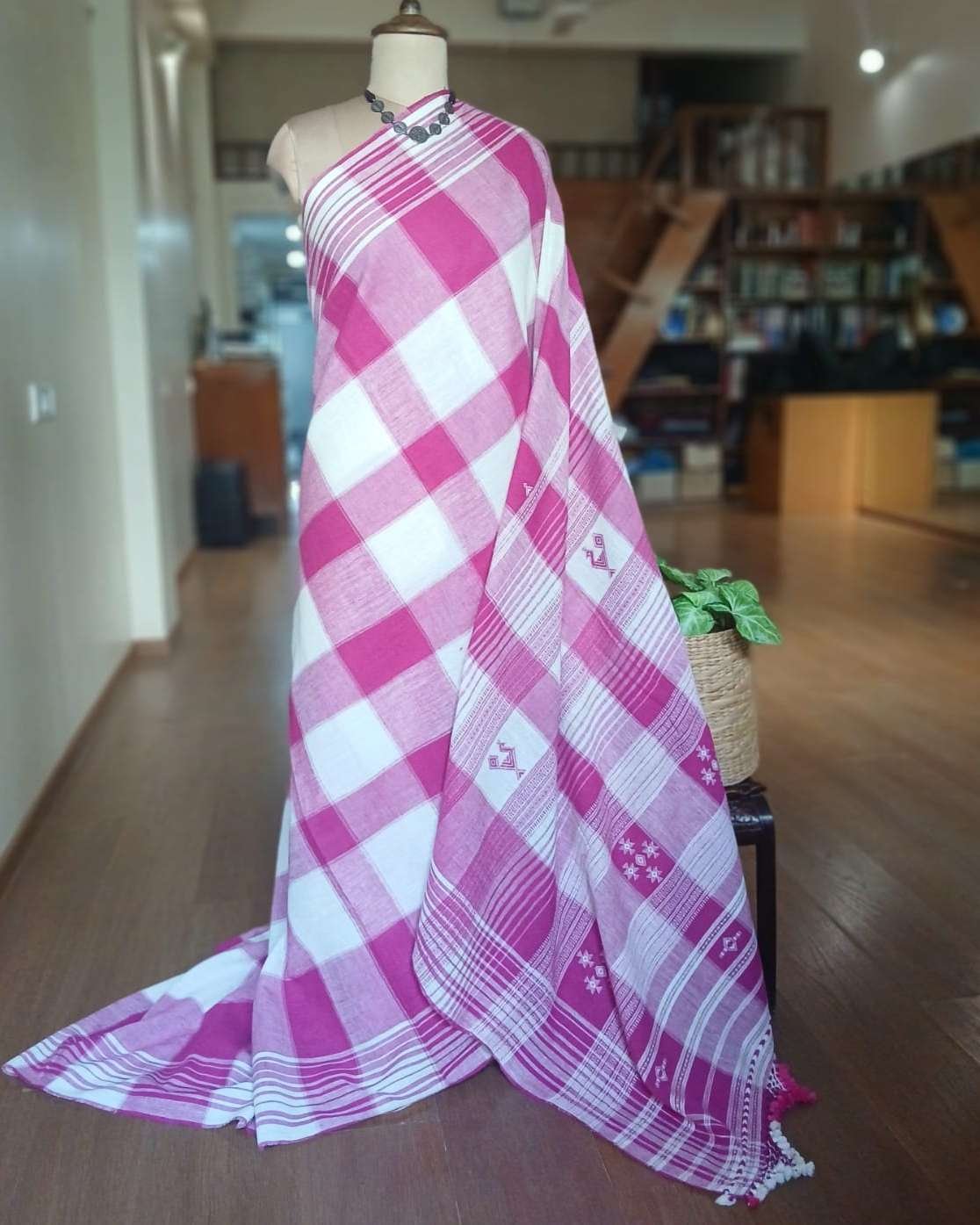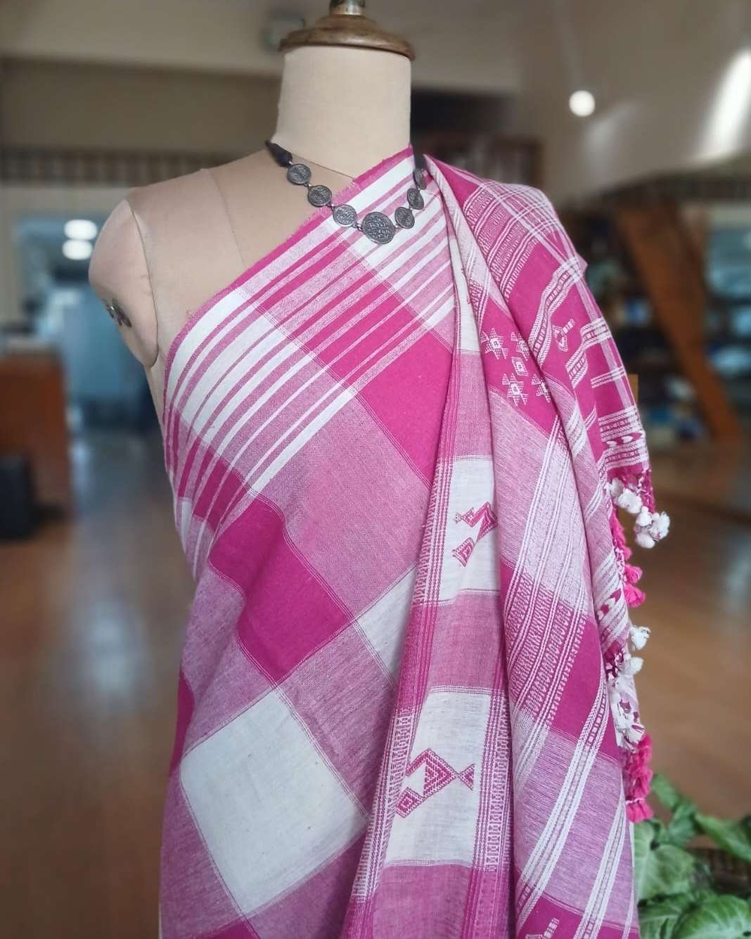 Bhujodi Sarees handwoven in Kala Cotton Beautifully finished with tassels.