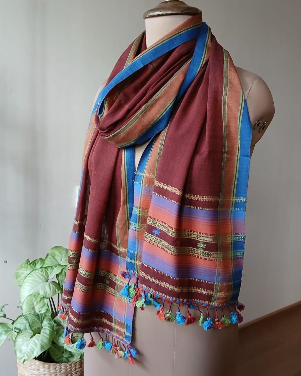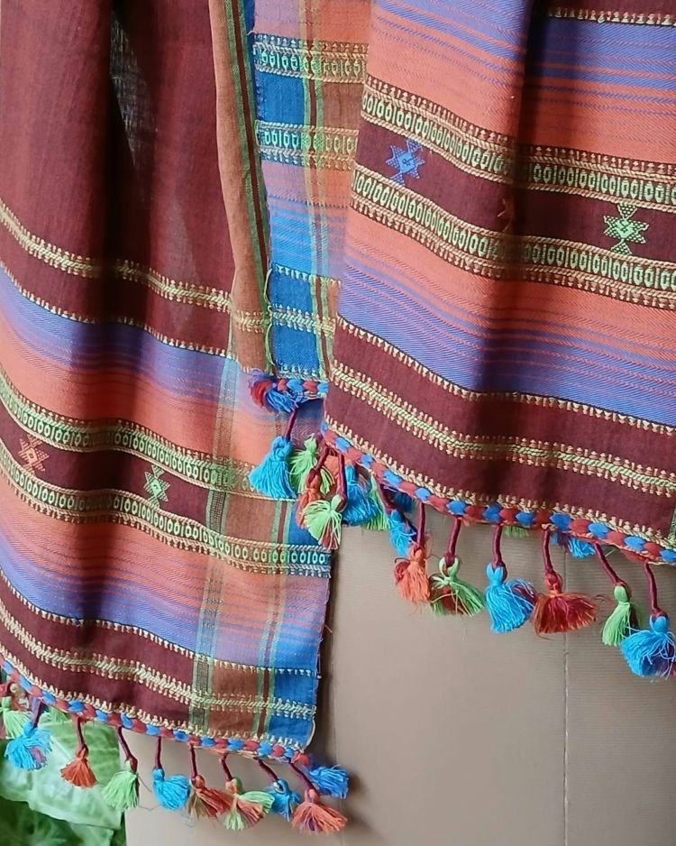 Bhujodi fine Cotton Stole, handwoven and finished with lovely tassels.