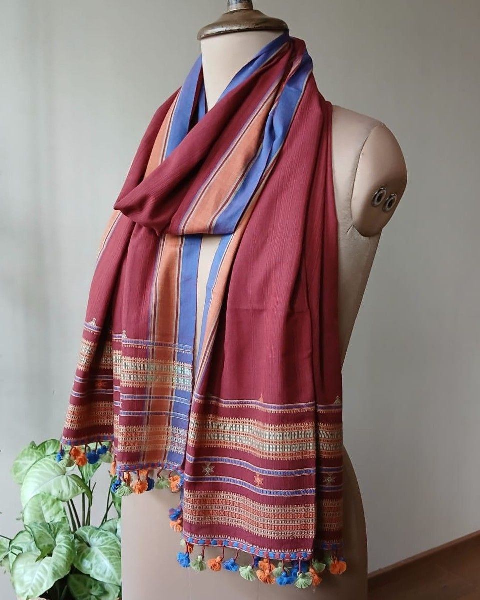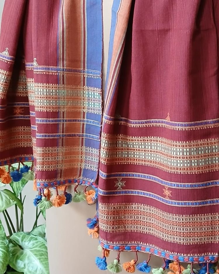 Bhujodi fine Cotton Stole, handwoven and finished with lovely tassels.