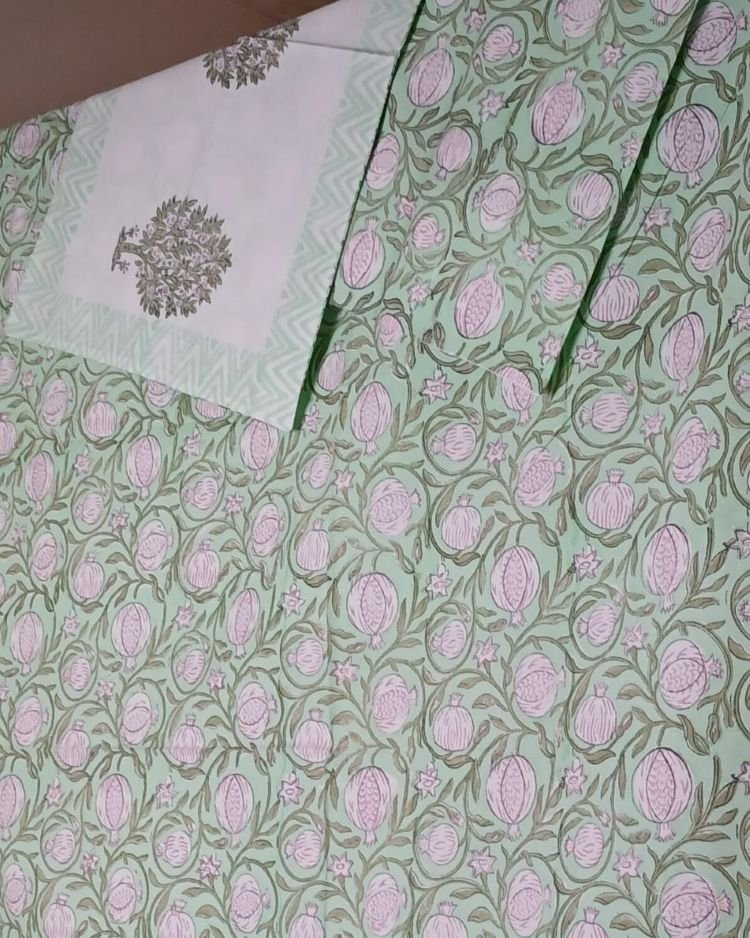 Brighten up your bedroom with these pretty bedsheet sets! They come with with 2 matching pillowcases, for a double bed. Hand block printed in Bagru near Jaipur, on good quality cotton. Can be machine washed in a gentle cycle with mild detergent.