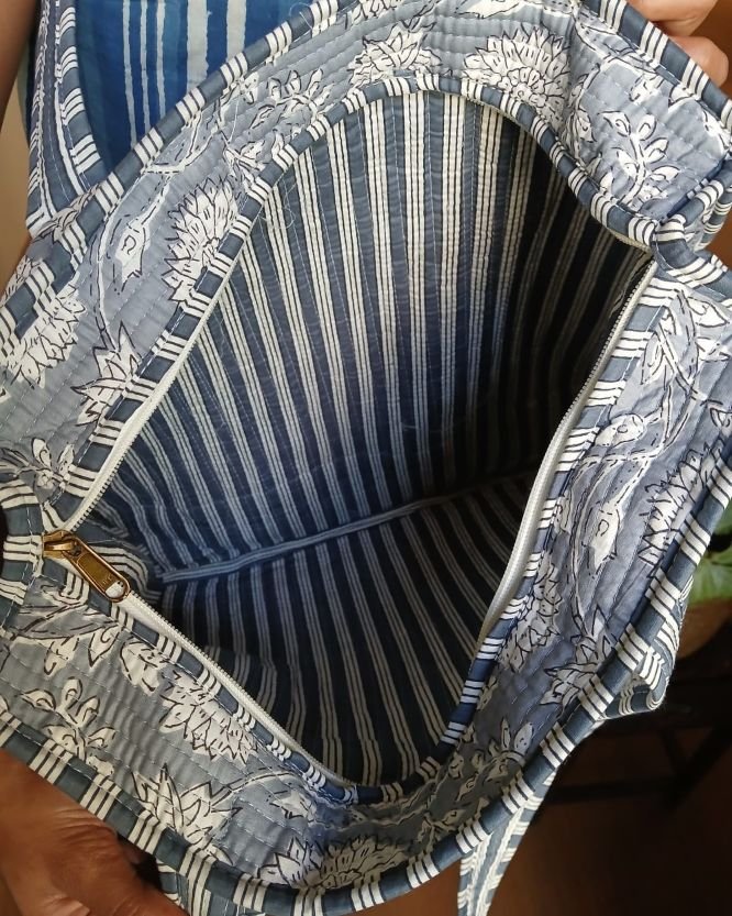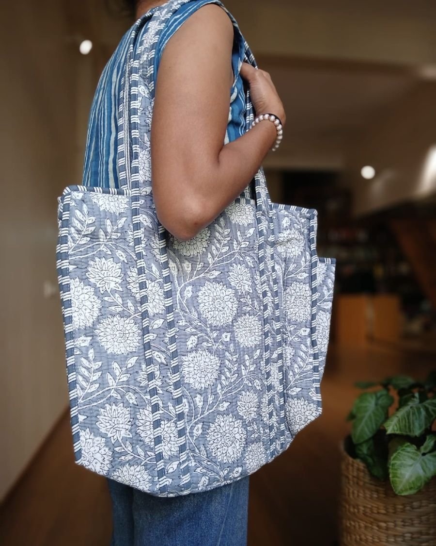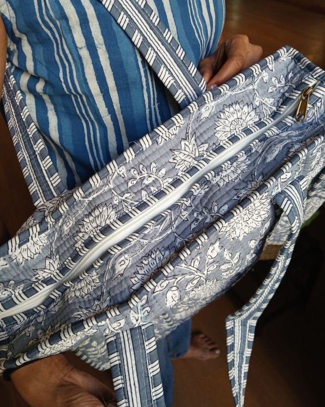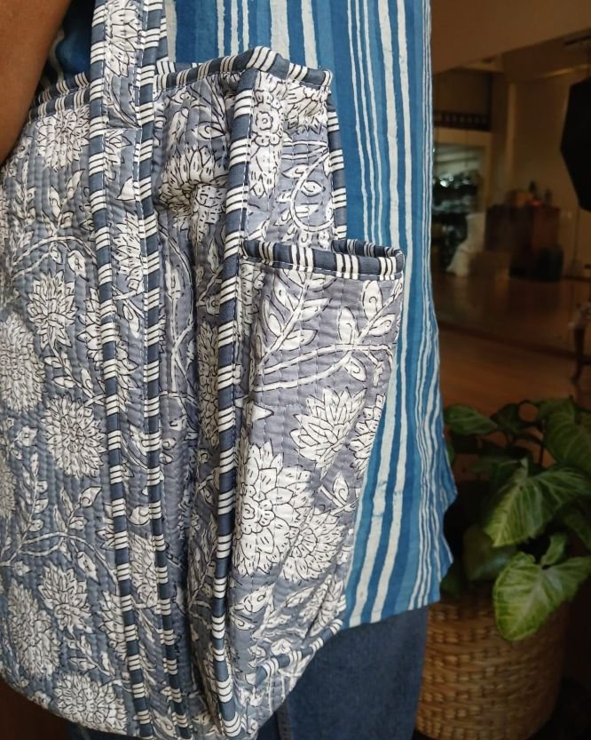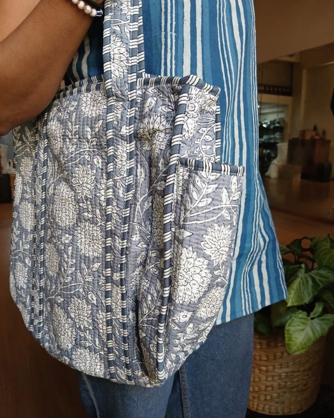 Blockprint Shopping Bags! Soft, light, and roomy, with comfortable straps and a side pocket.
