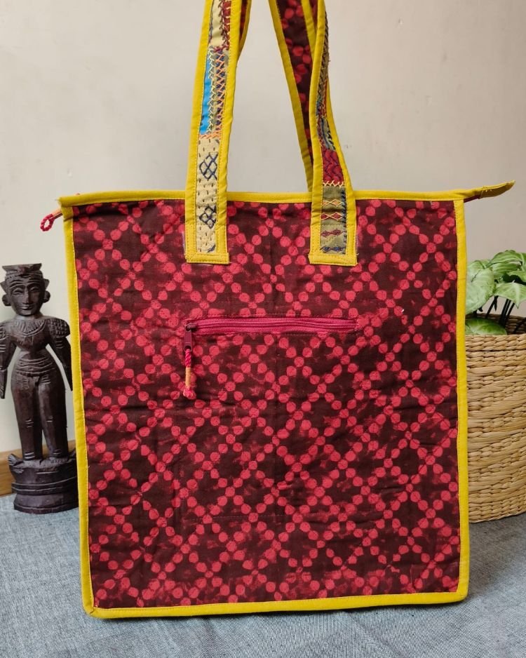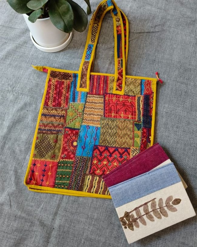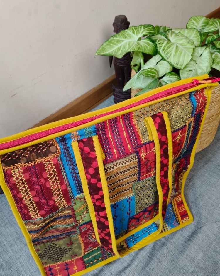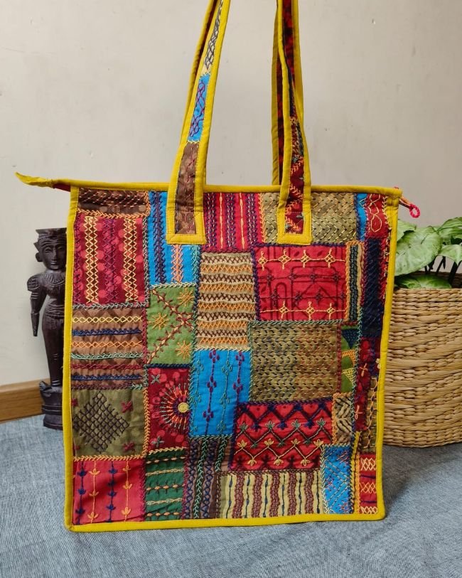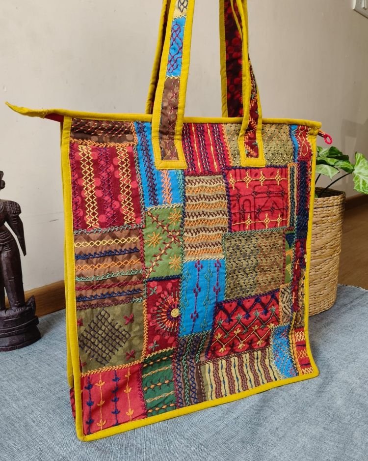 Boho Patchwork hand-embroidered large size tote bag. See more details below