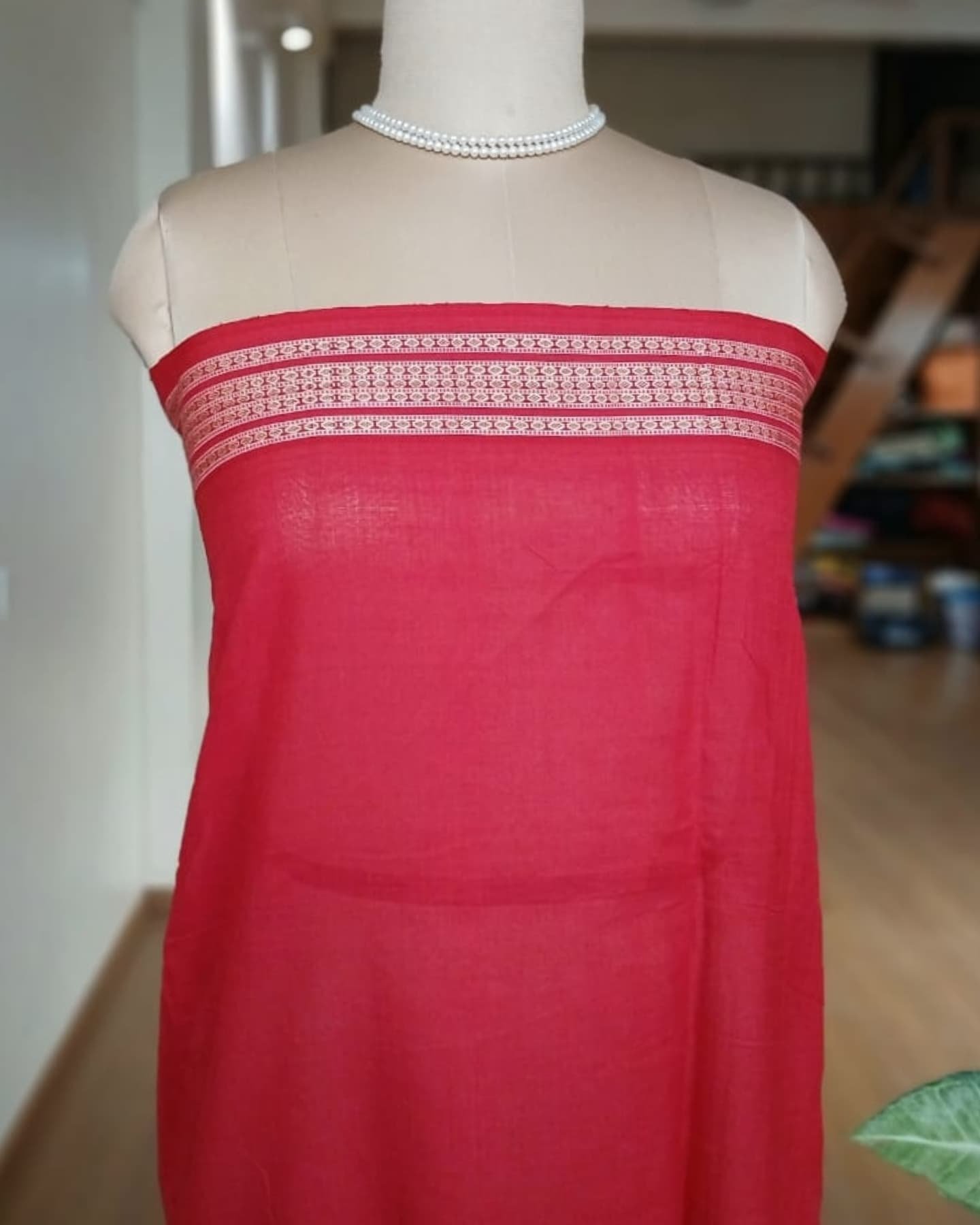 Saree is 5.3 meters and there is 90 cms plain contrast blousepiece attached on the palla side.