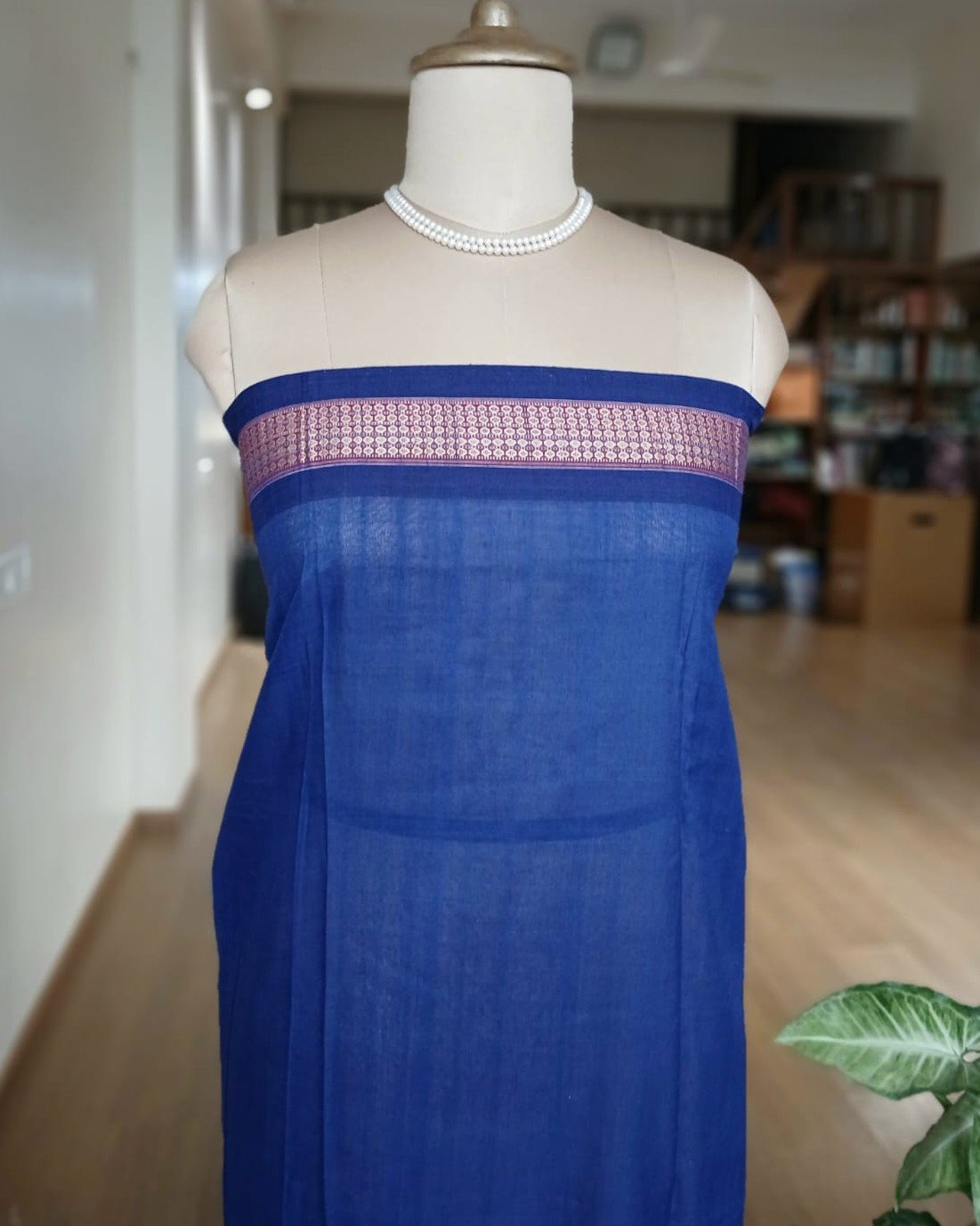 Saree is 5.3 meters and there is 90 cms plain contrast blousepiece attached on the palla side.