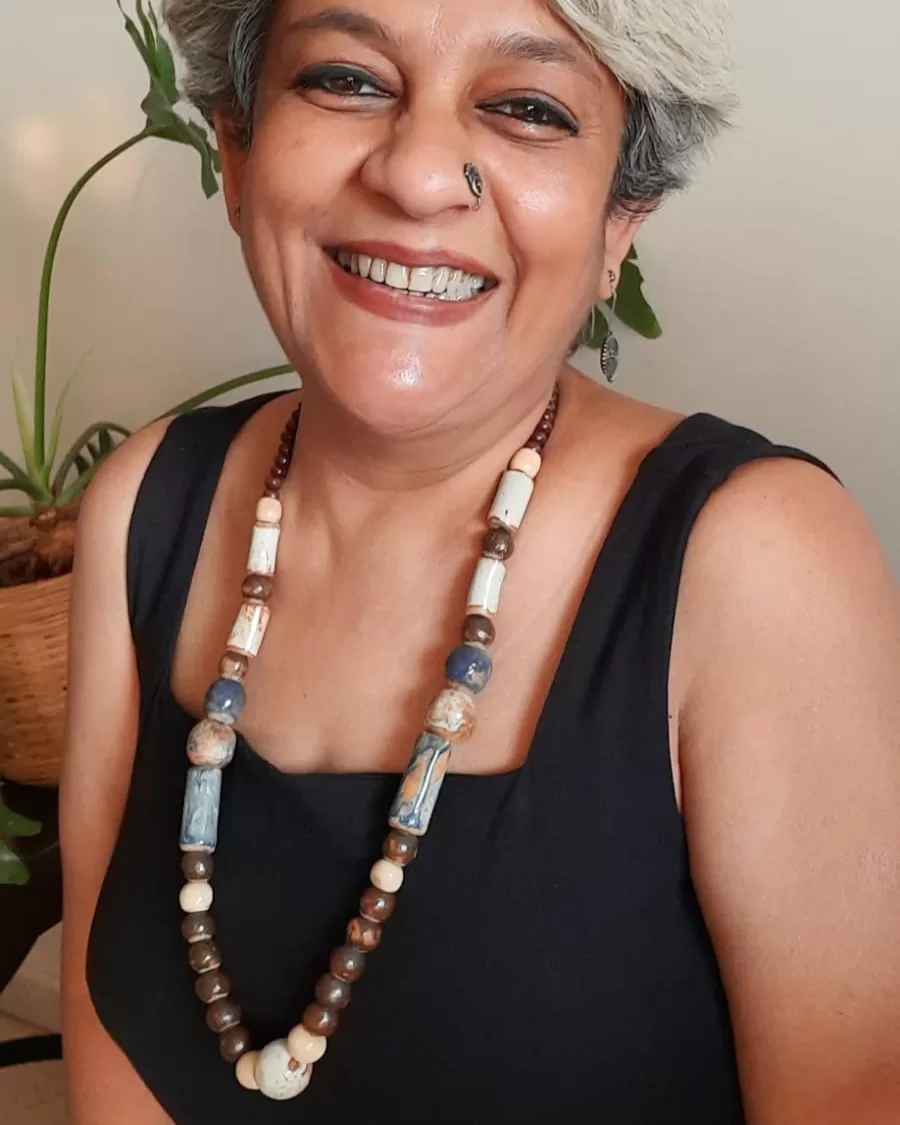 Ceramic copper and brass combination necklaces from Santiniketan