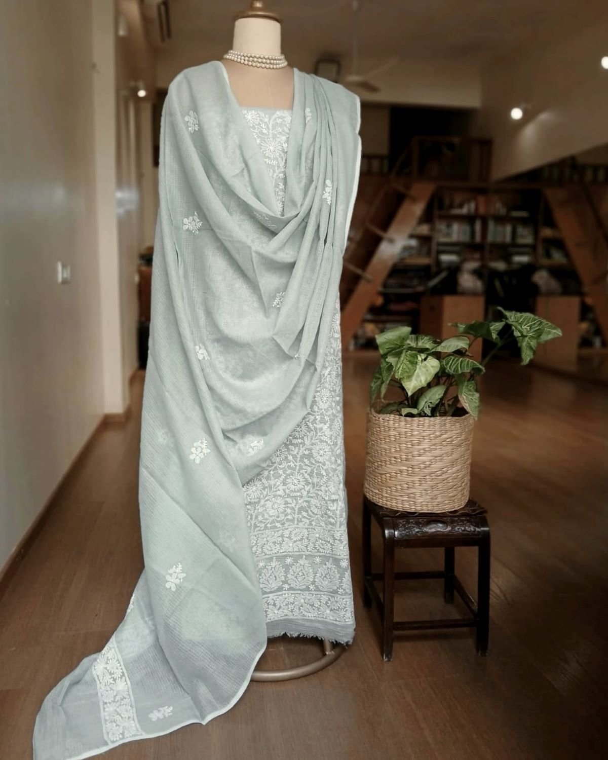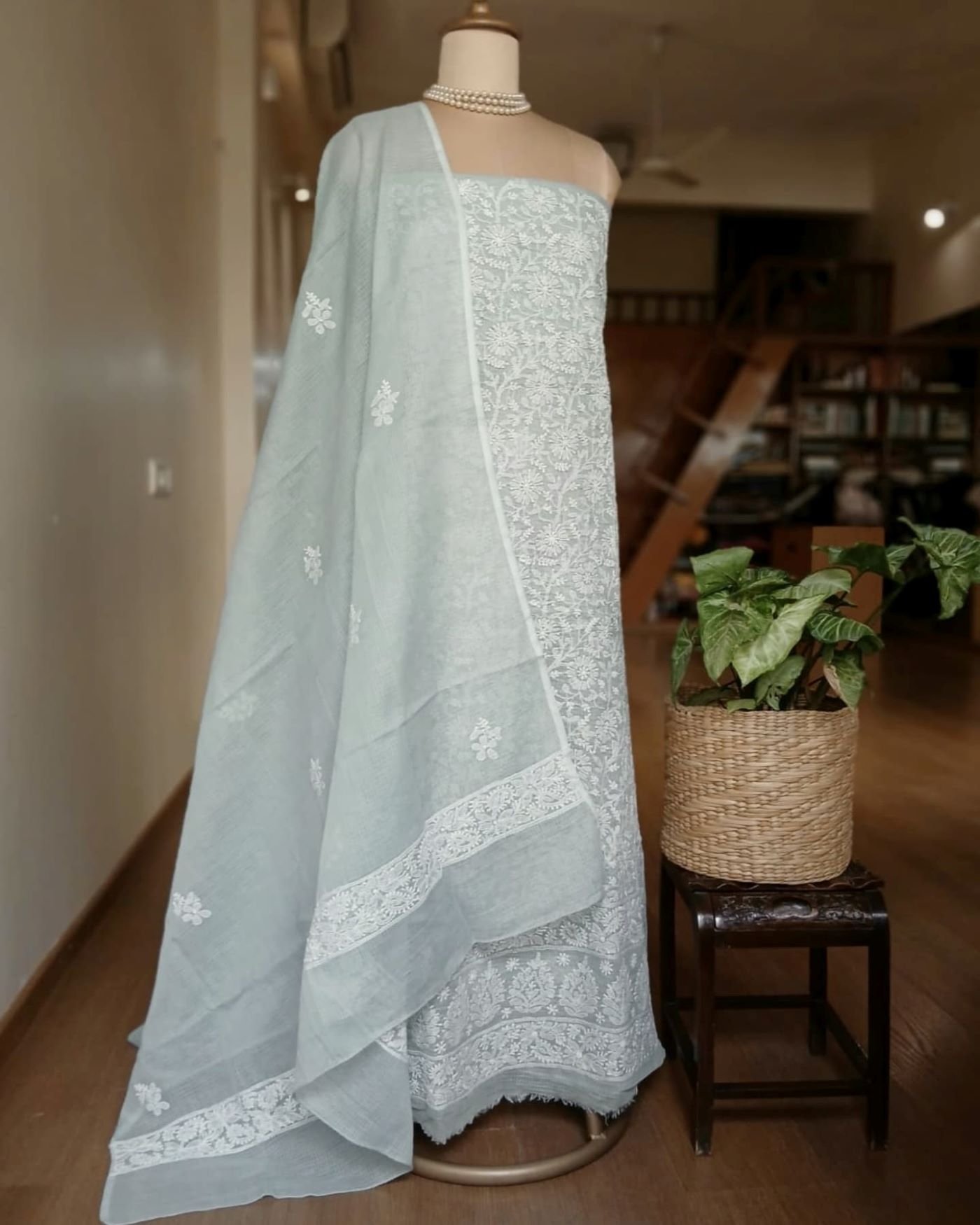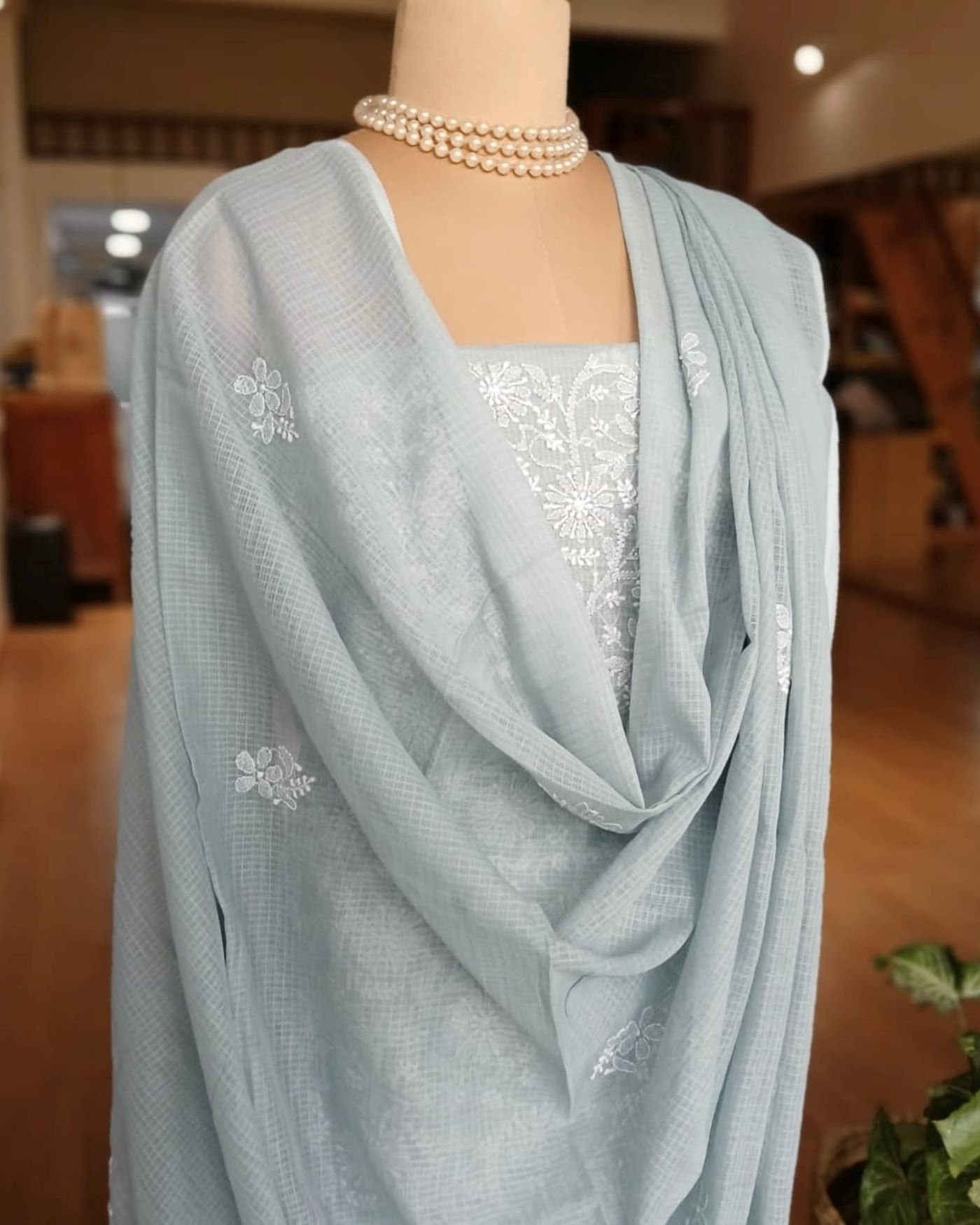 Chikankari Kurta and Dupatta Set Fabric in Kota Doria. See more details below