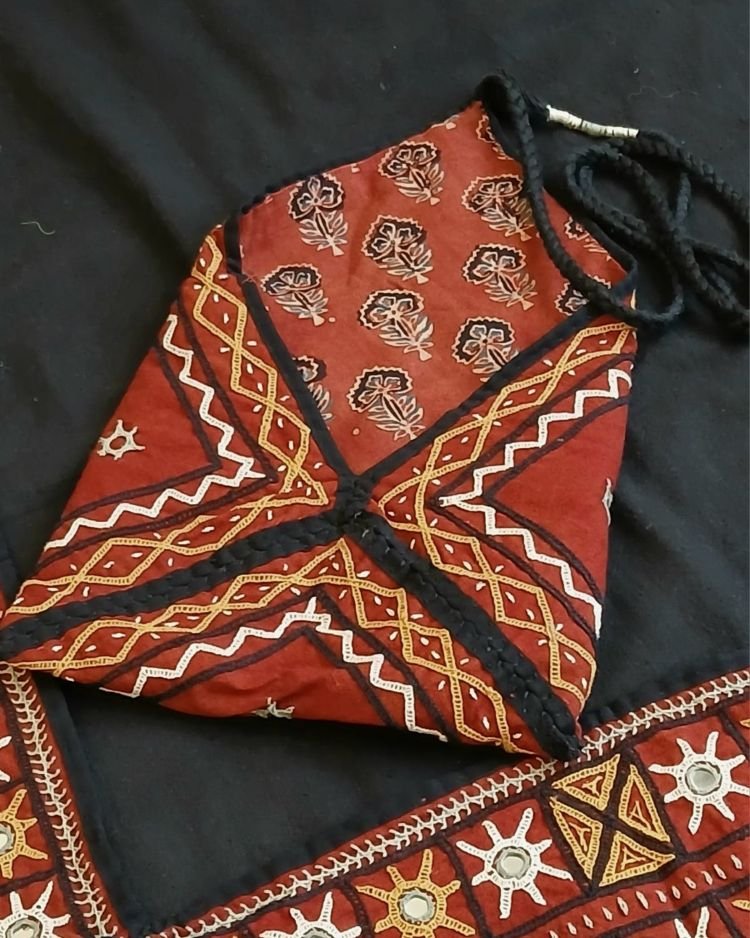 Ajrakh pouch for holding the coins