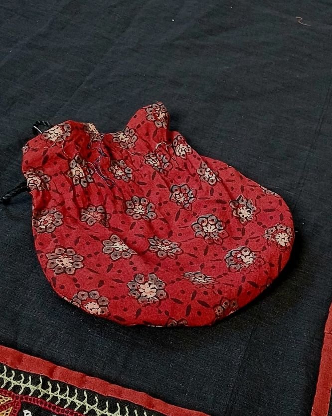 Ajrakh pouch for holding the coins