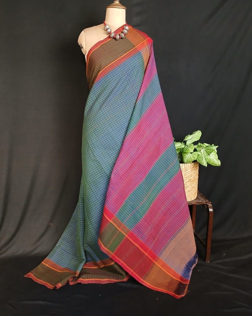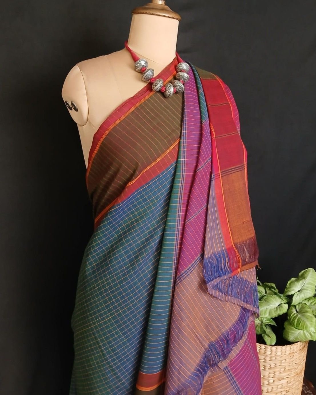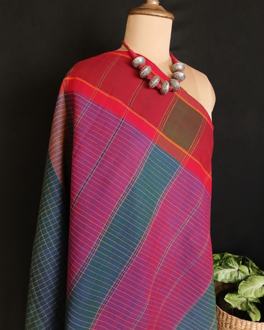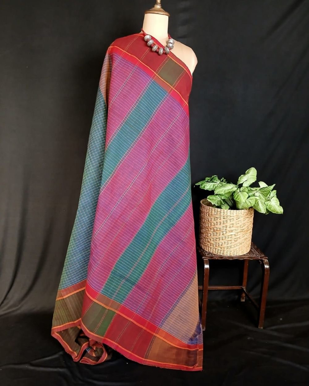 Classic handwoven 40-count Kandangi from Chettinad in vibrant colours.