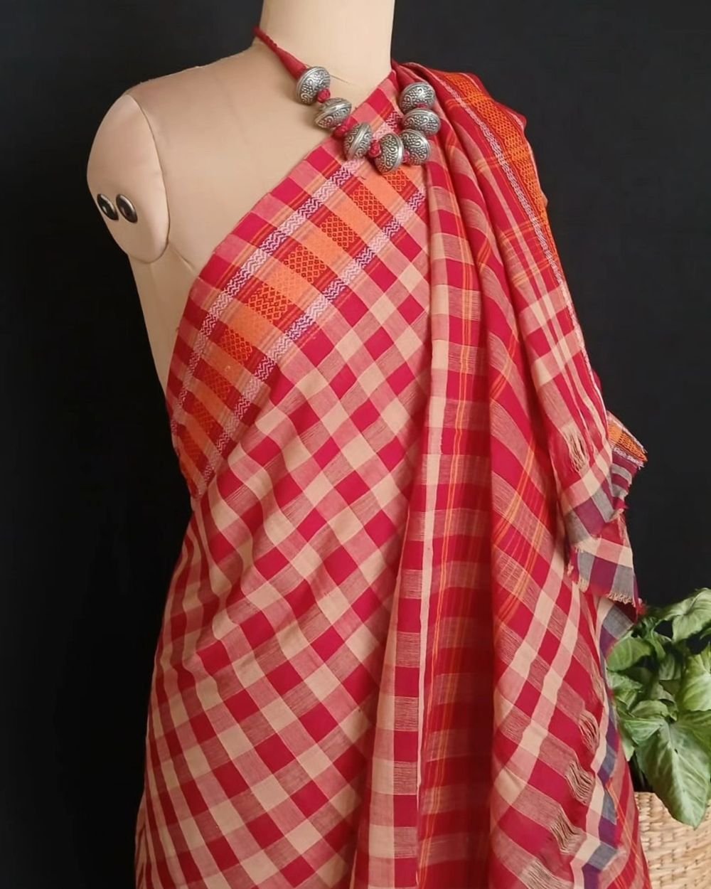 Classic handwoven 40-count Kandangi from Chettinad in vibrant colours, with woven borders.