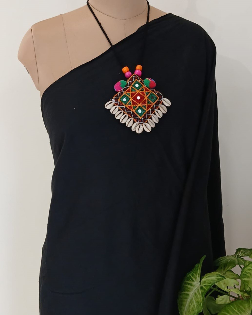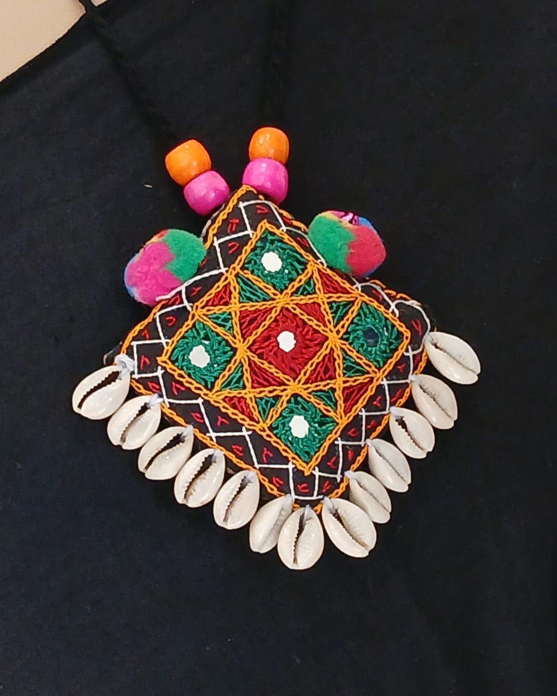 Colourful Meghwal Hand Embroidered necklace with Cowries, Mirrorwork and beads
