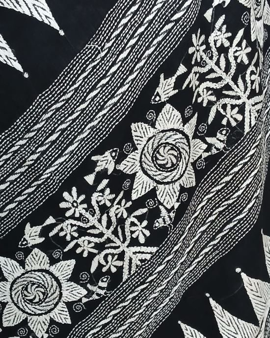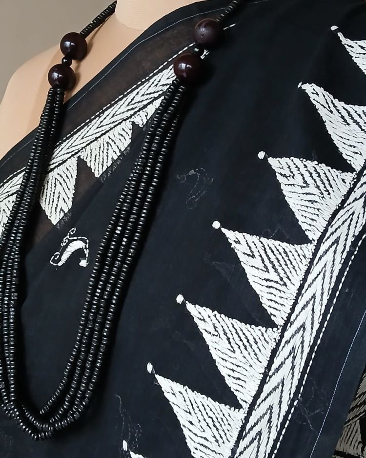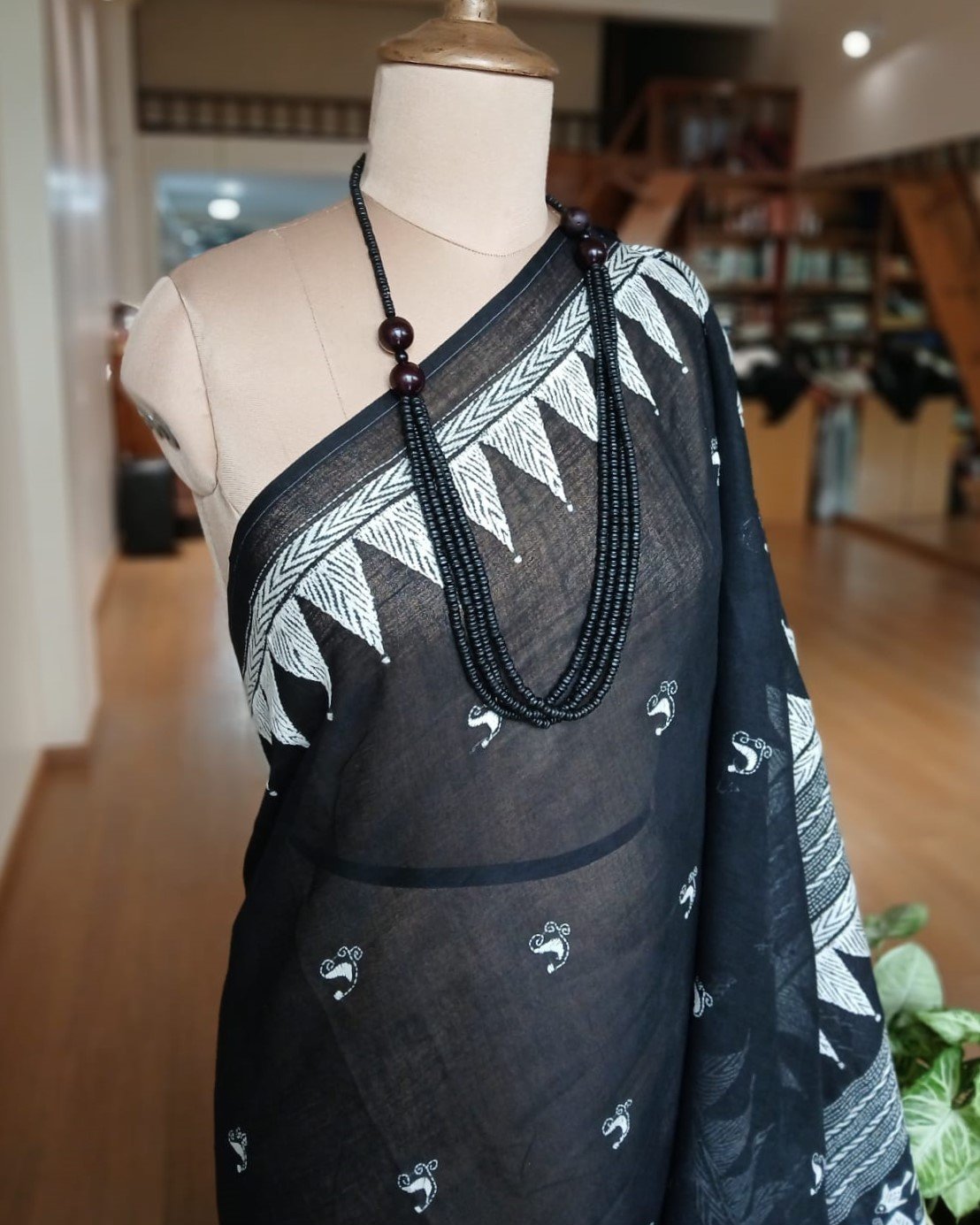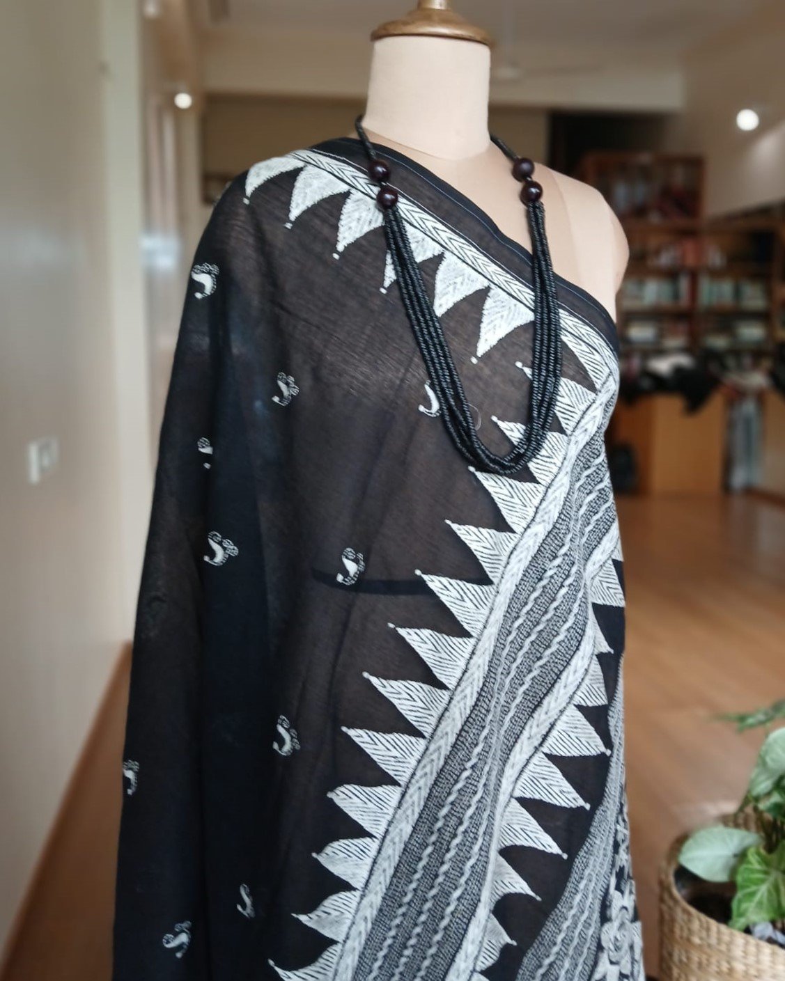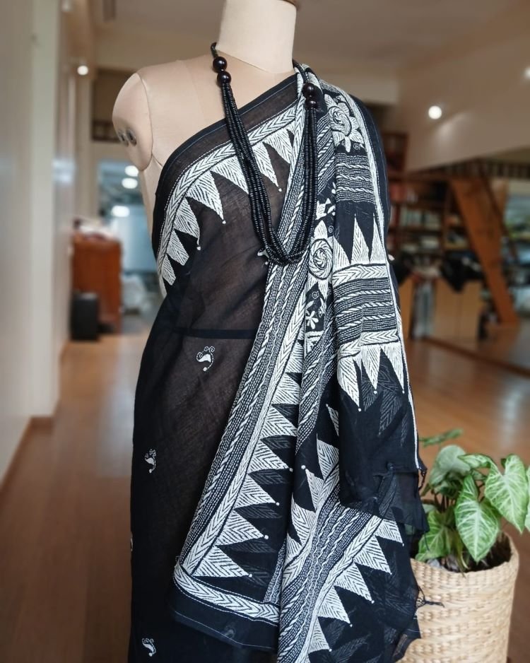 Hand embroidery done in Santiniketan, on soft cotton saree woven in Dhonekhali.