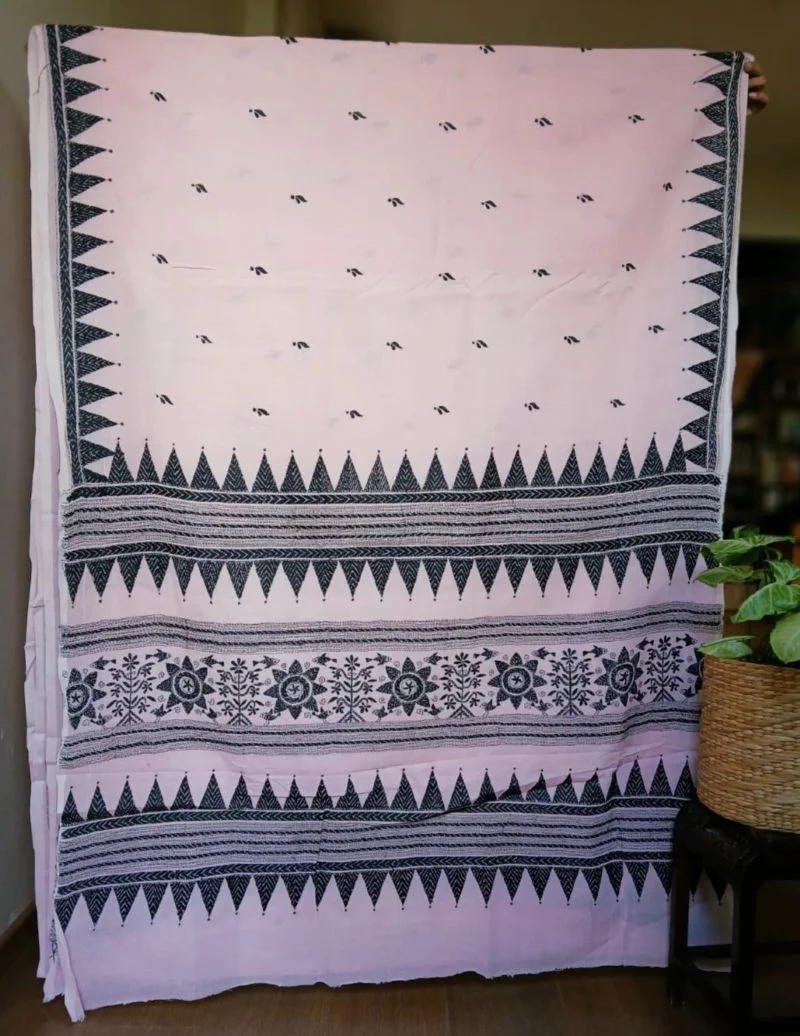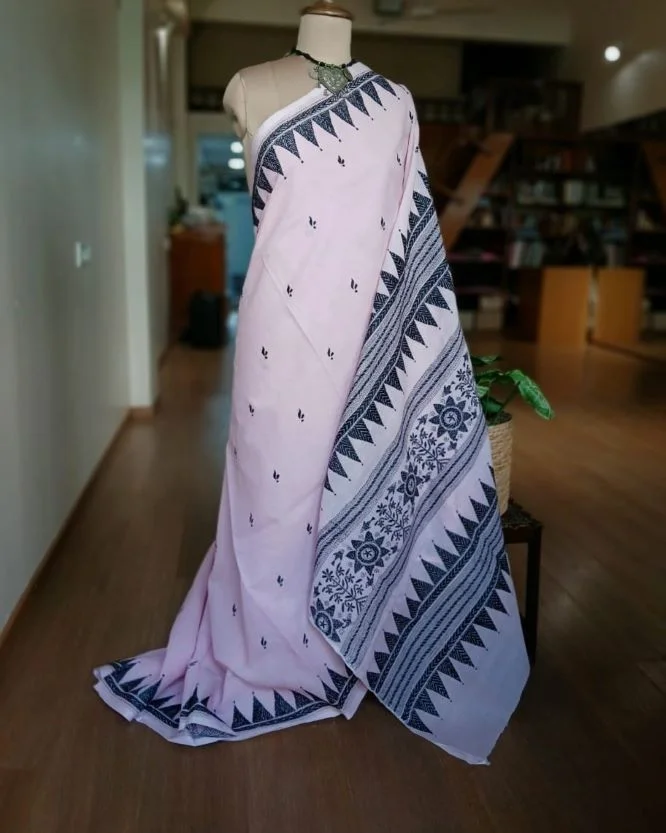 Beautiful kantha hand embroidery done in Santiniketan, on soft cotton saree woven in Dhonekhali.
