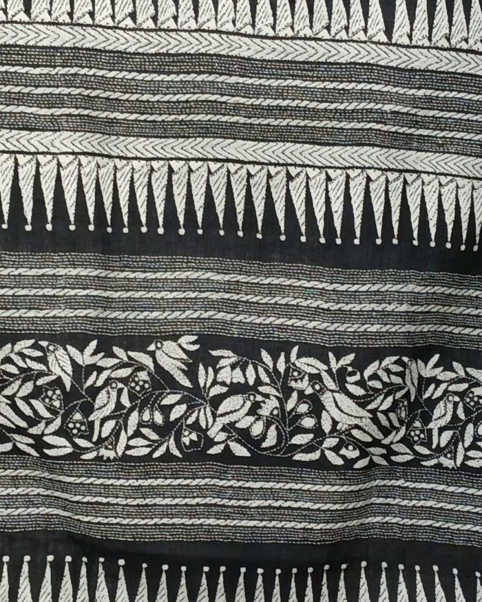 Beautiful kantha hand embroidery done in Santiniketan, on soft cotton saree woven in Dhonekhali.