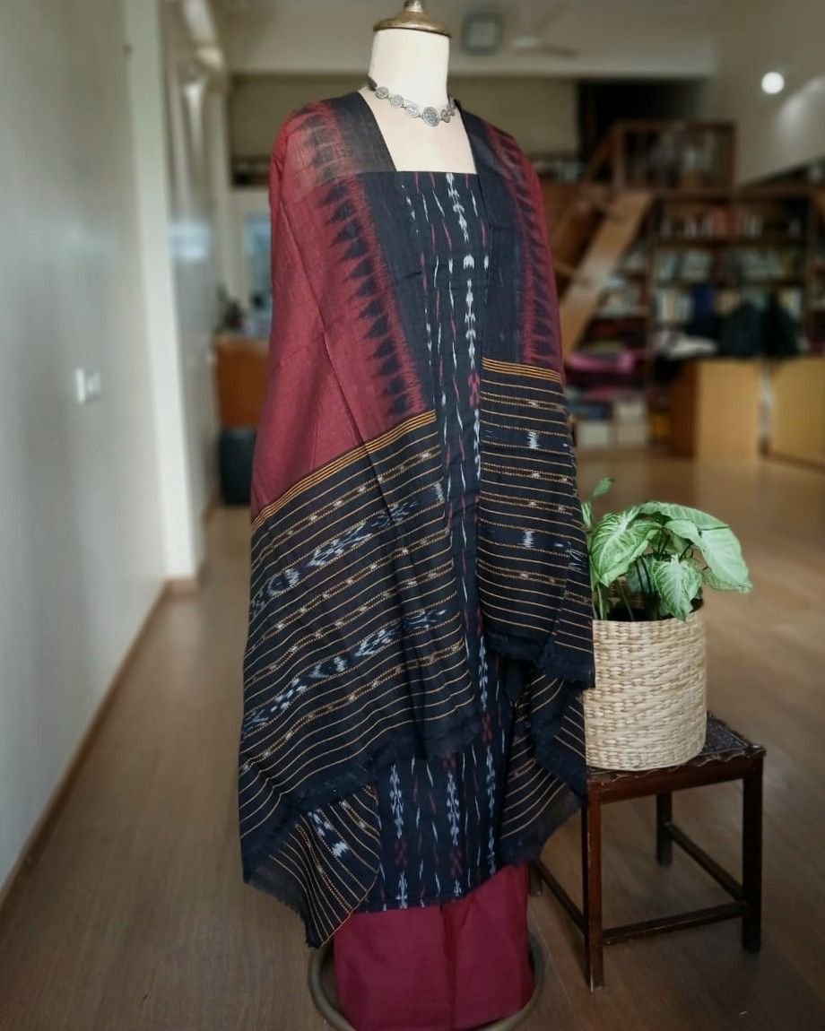 Cotton Salwar Set (3-piece) in Odisha Ikat. See more details below.