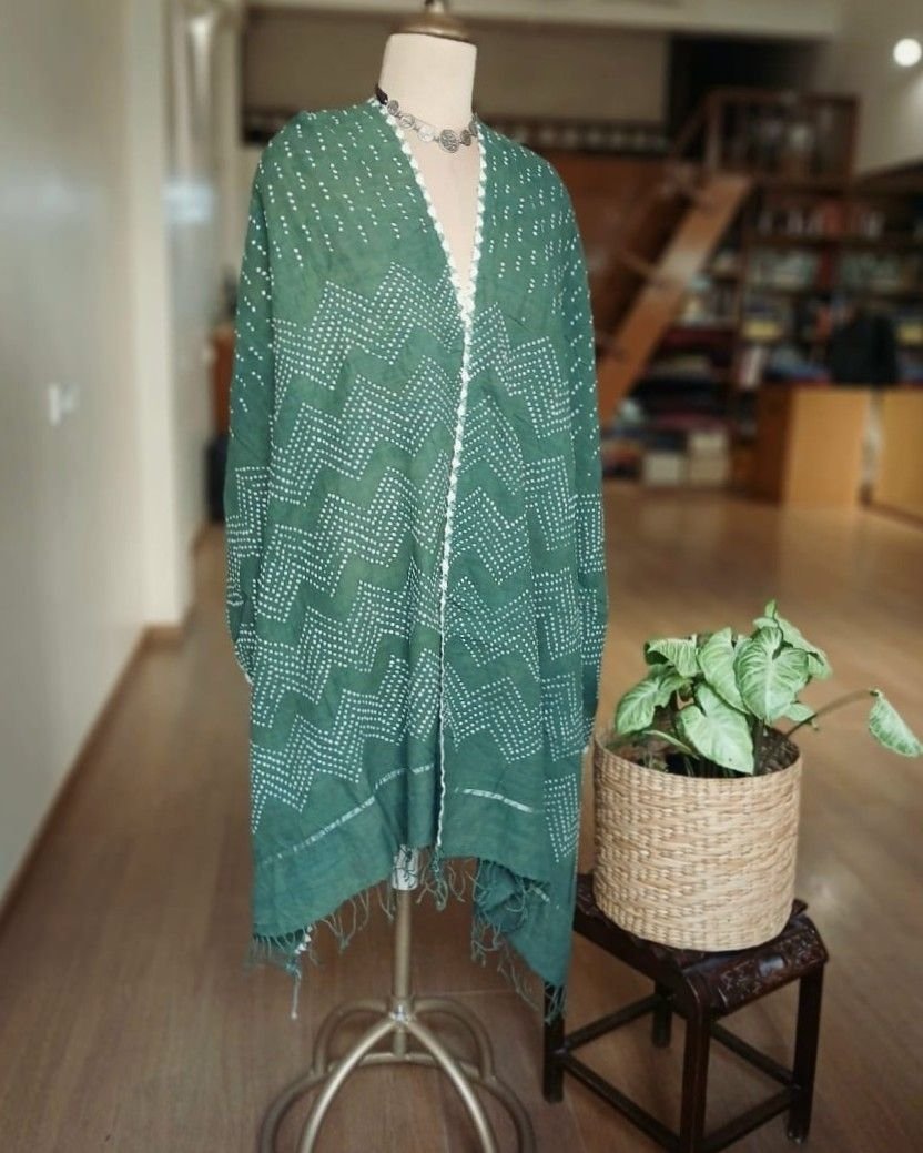 Cotton Stole with very fine designer bandhani work.