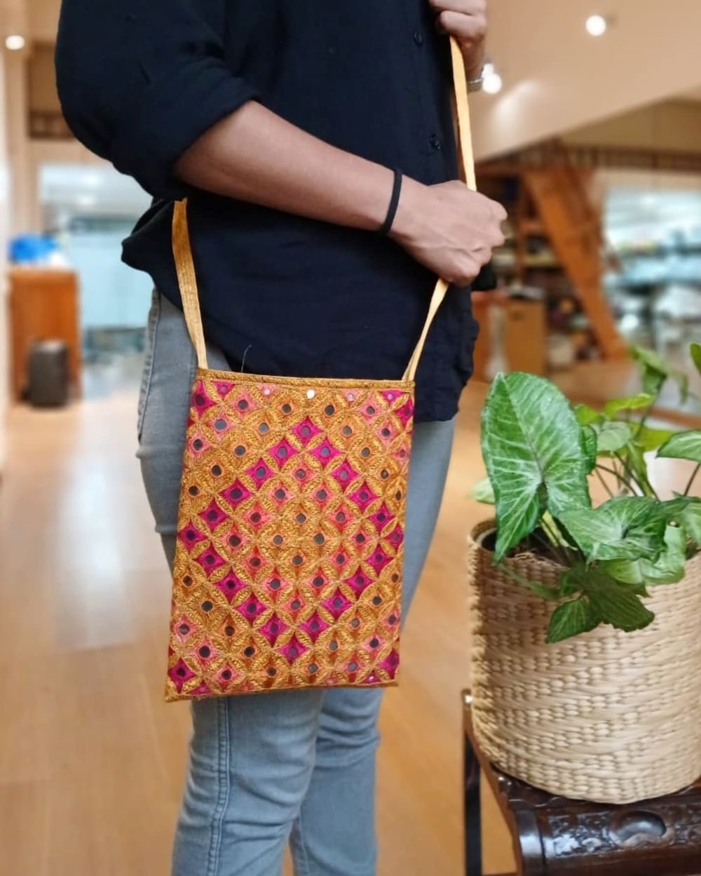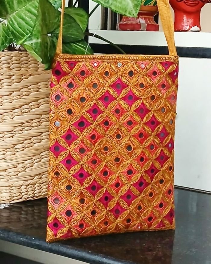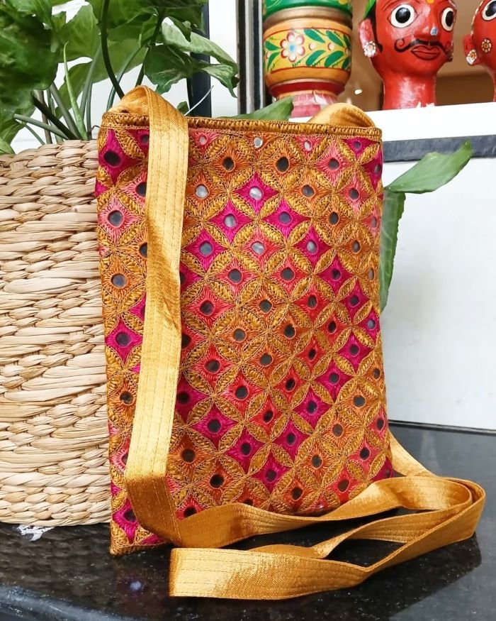 Sling Bag with diamond design embroidery by the Sodha Rajput community.
