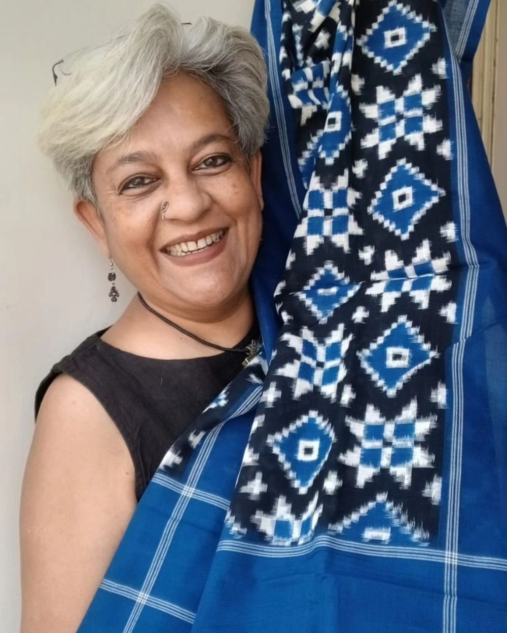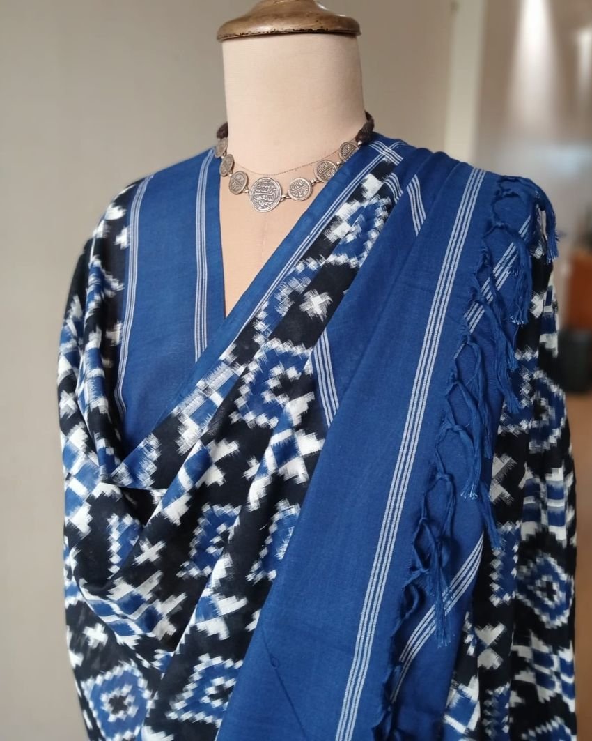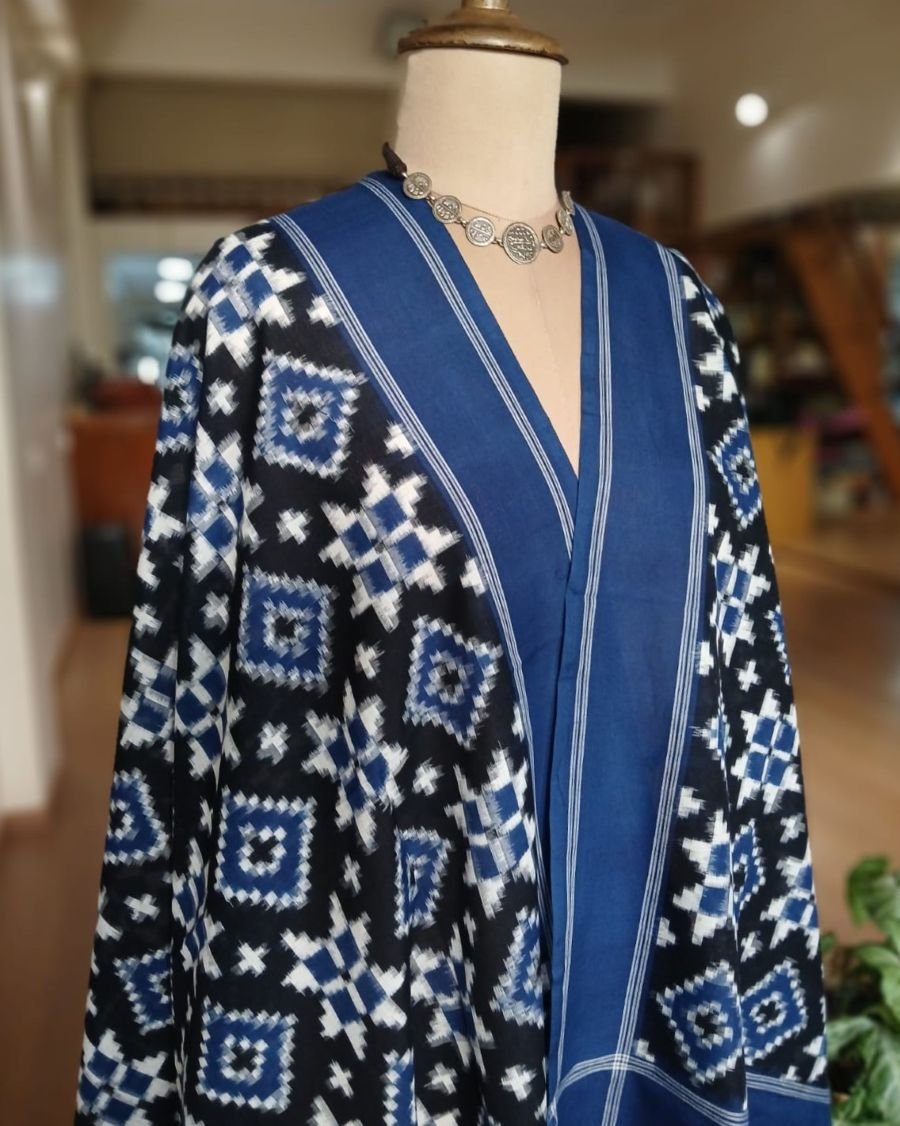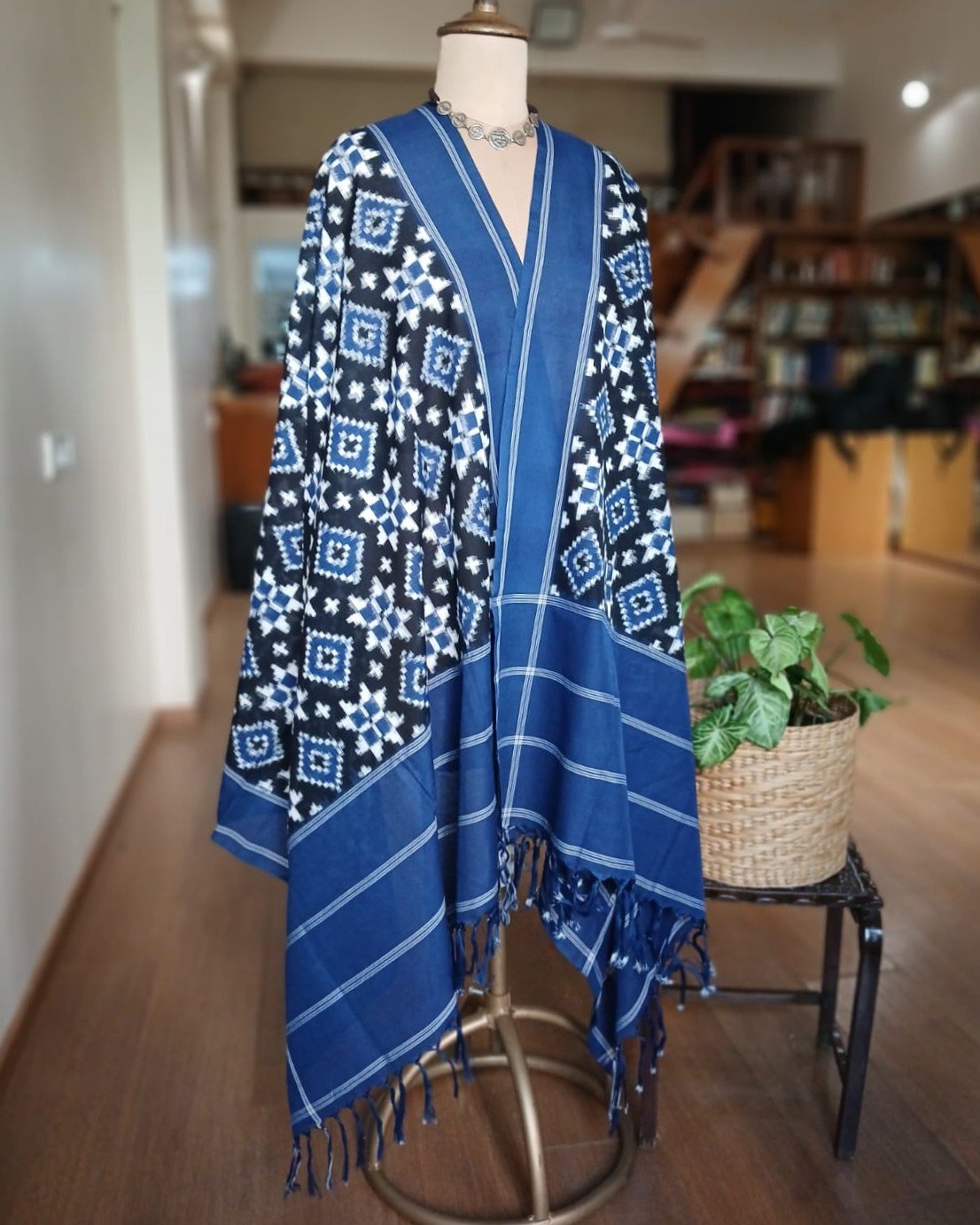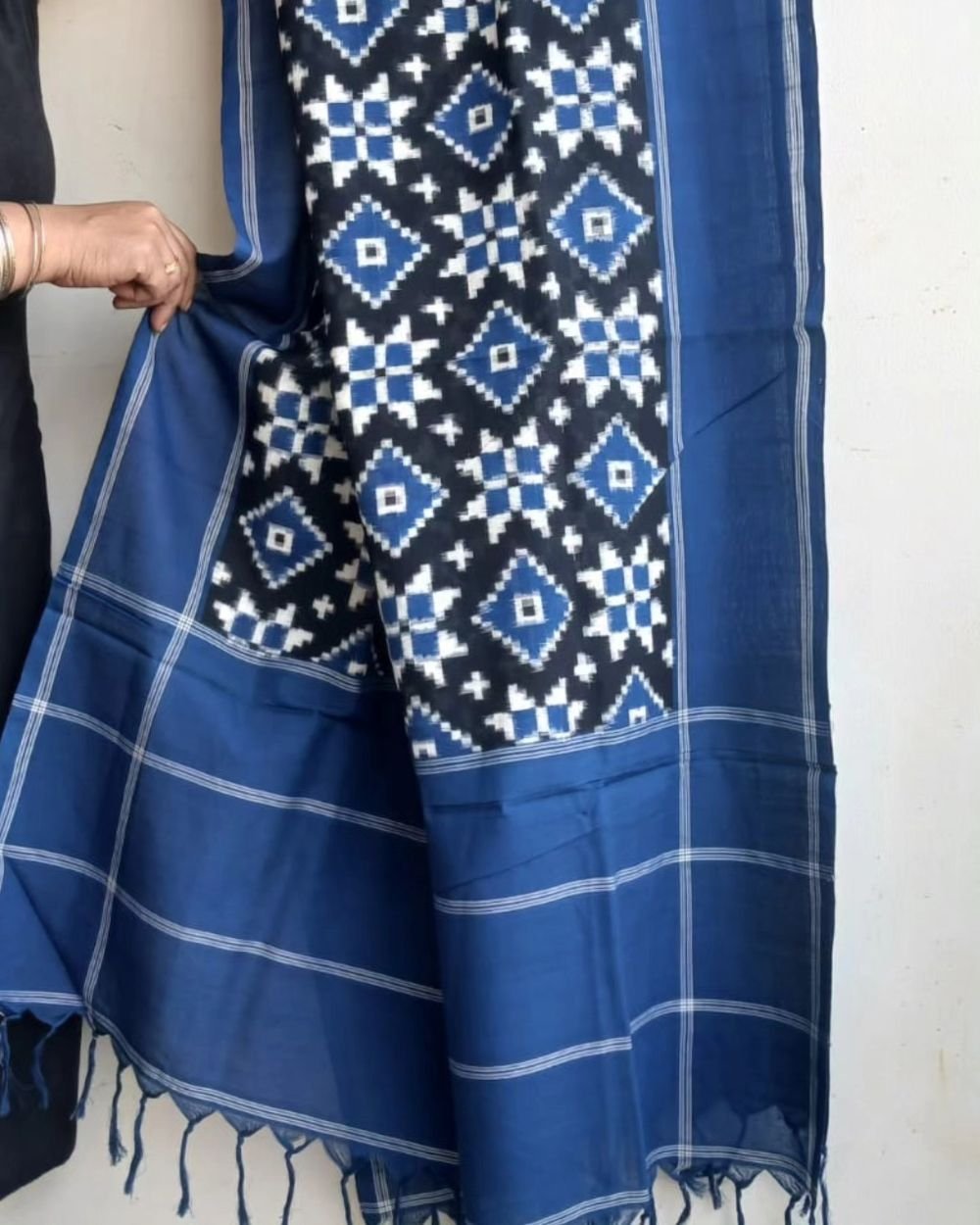 Double Ikat Cotton Dupatta, hand tied and hand woven in Telangana.