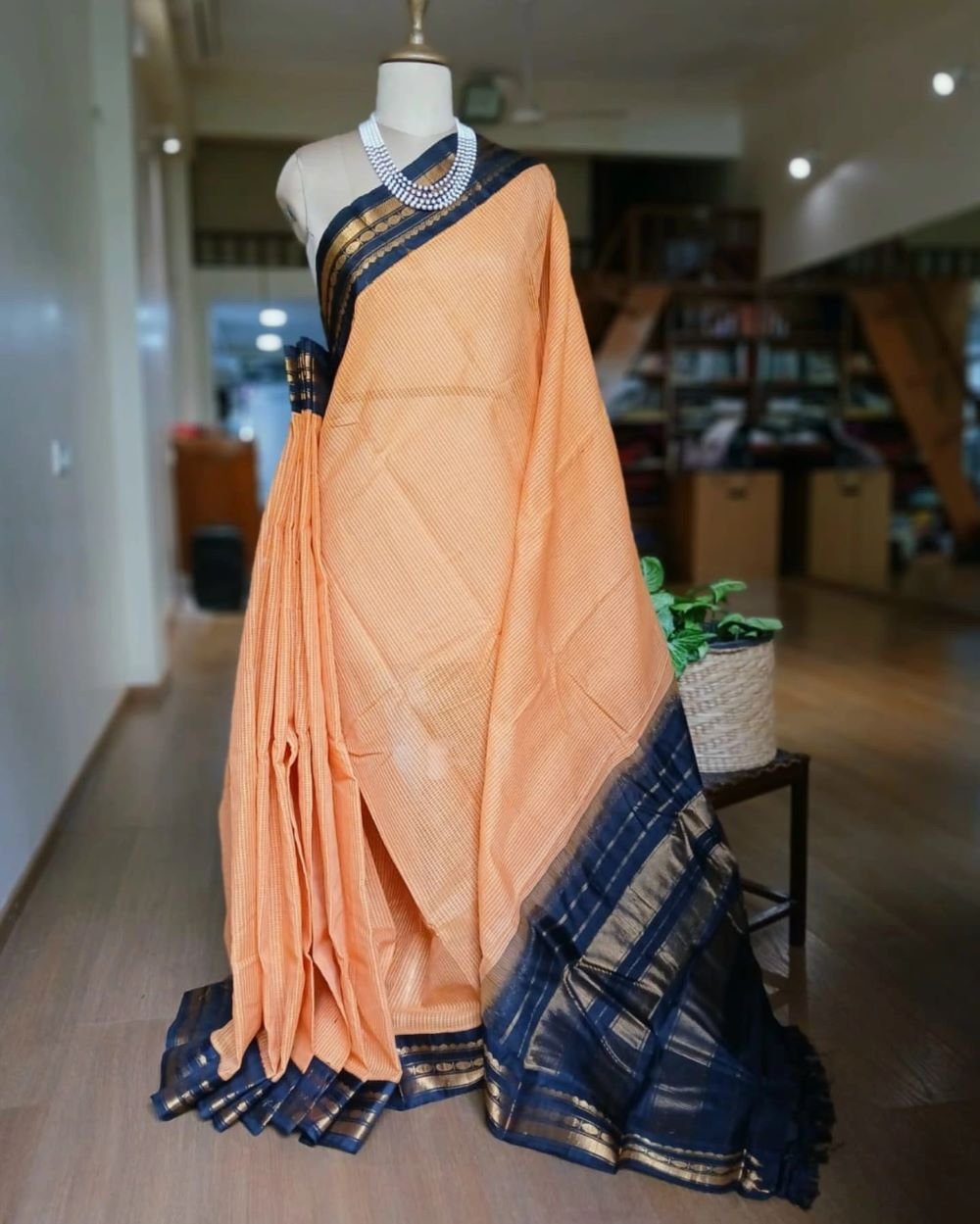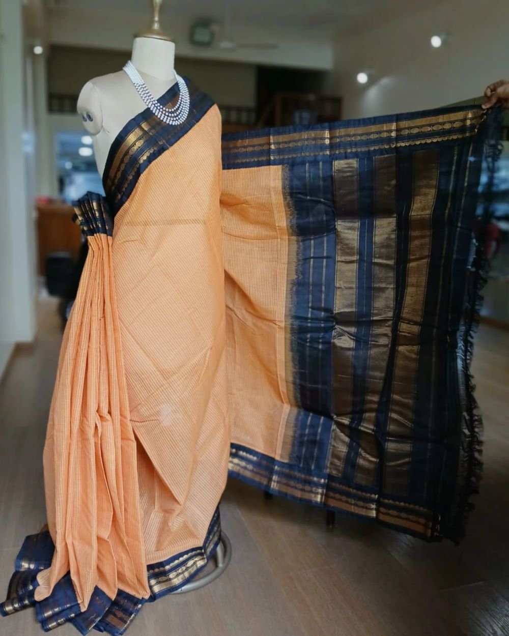 We will attach extra fabric inside to increase the length so that you can get a long pallu and enough pleats.