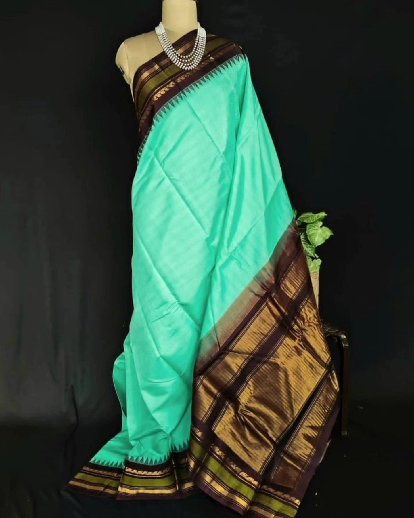 Gadwal Kuttu technique handweave saree with checked cotton body, silk border, and silk palla. See more details below
