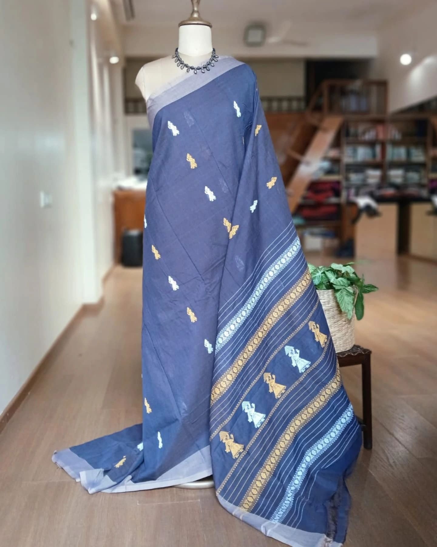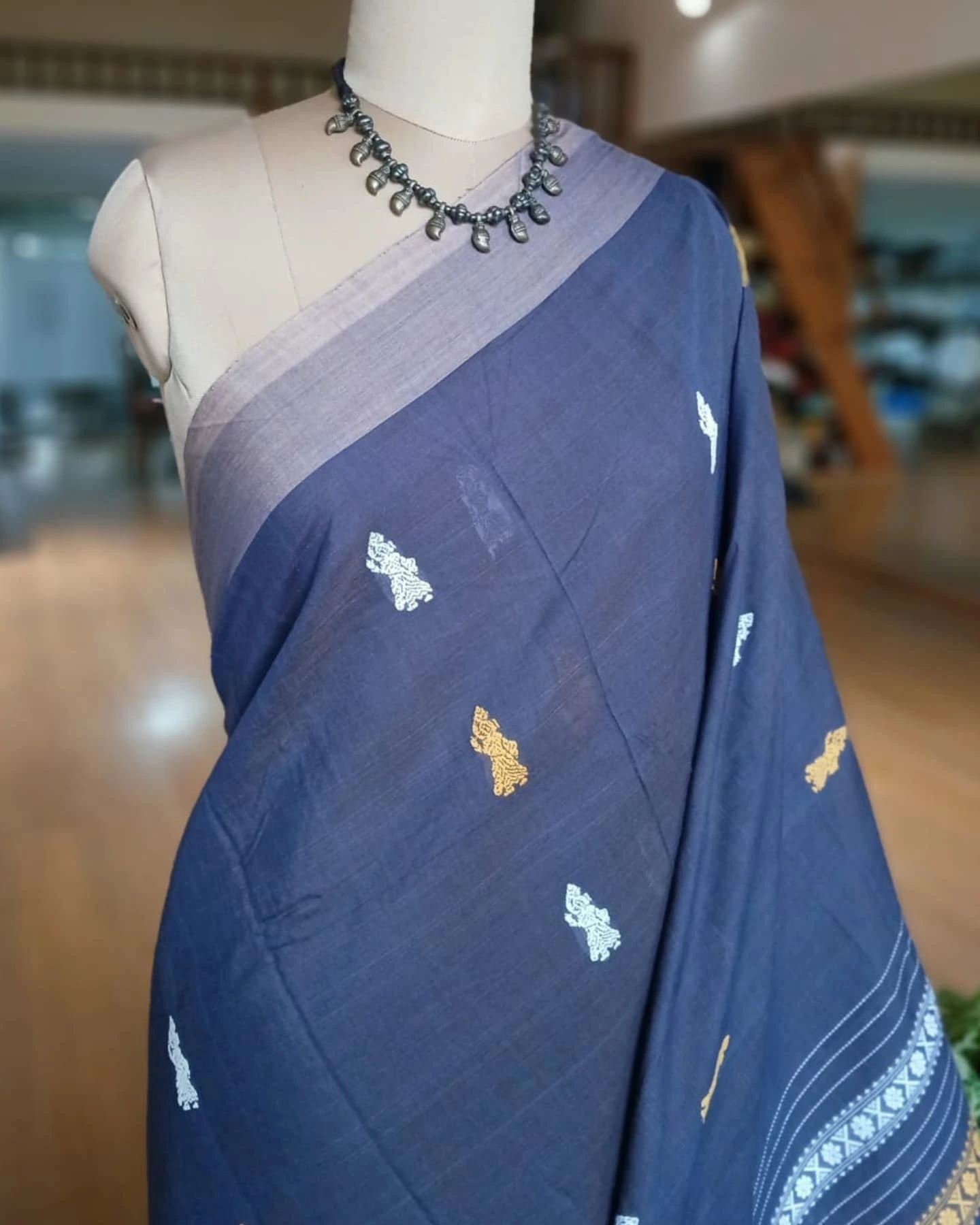 Handwash in cold water and hang to dry. Do not wring the saree.