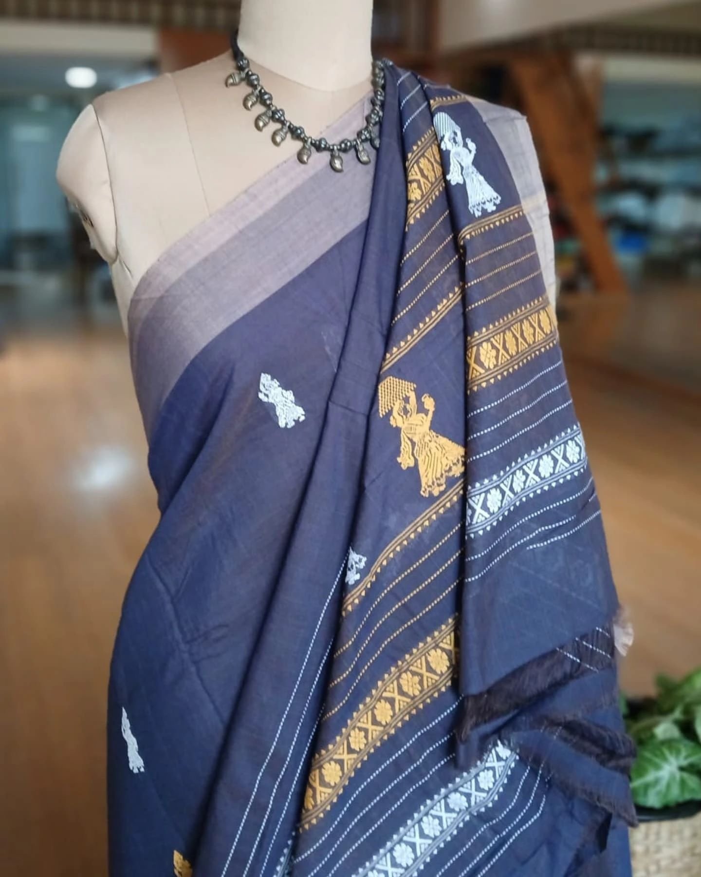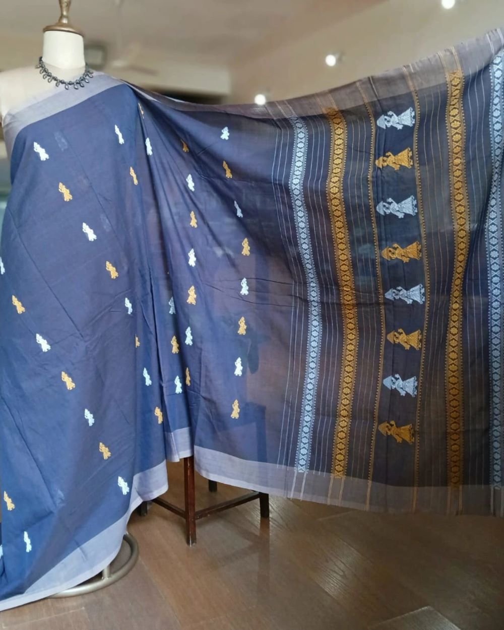 Gollabhama (milkmaid / gopika) handweave saree in cotton from Siddipet, Telangana.