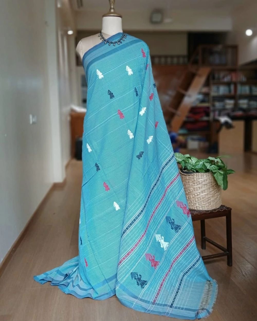 Handwash in cold water and hang to dry. Do not wring the saree.