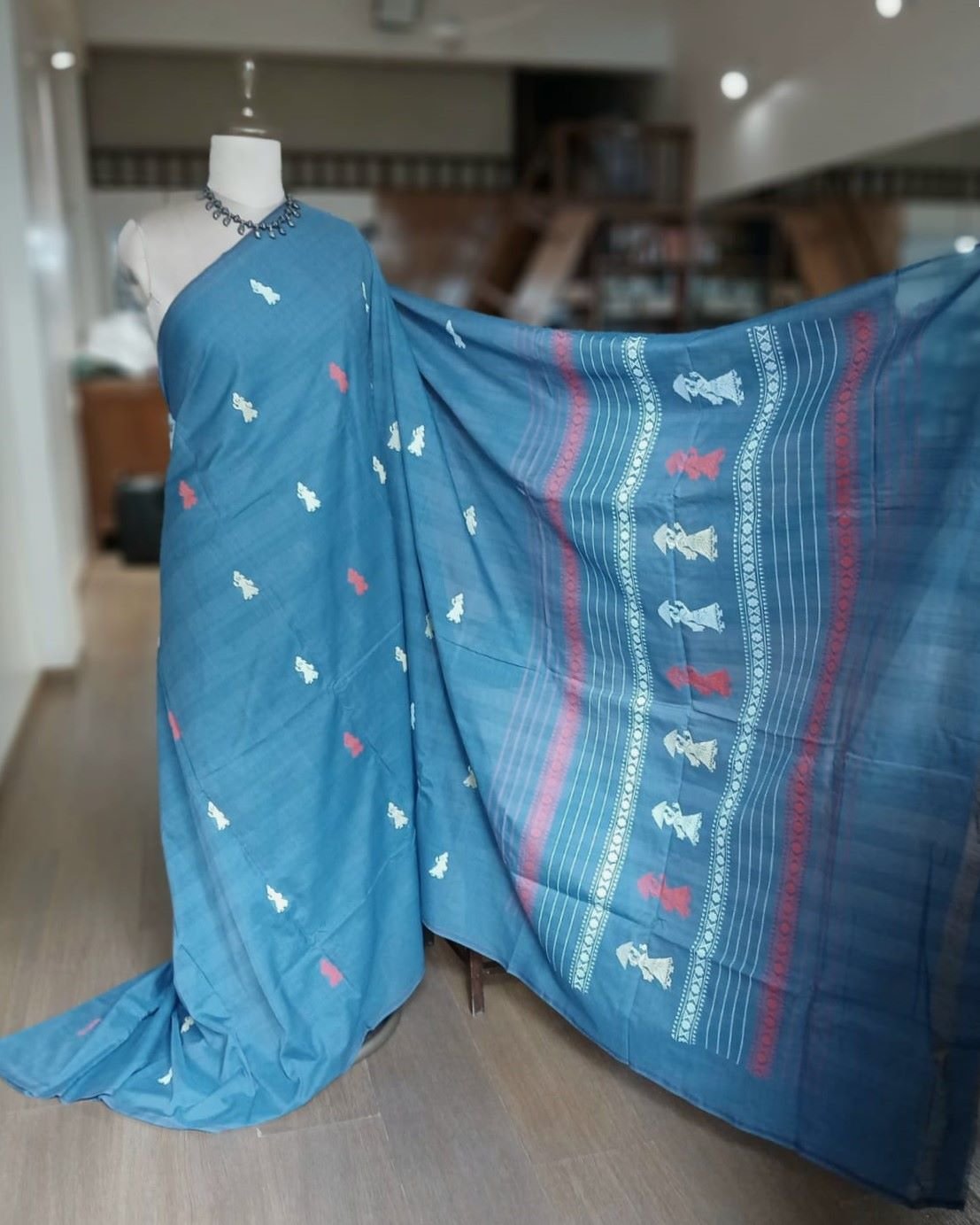 Handwash in cold water and hang to dry. Do not wring the saree.
