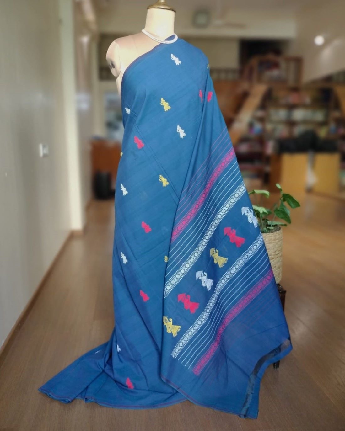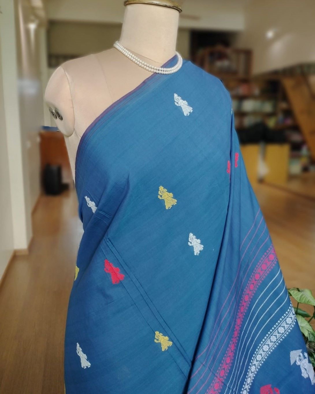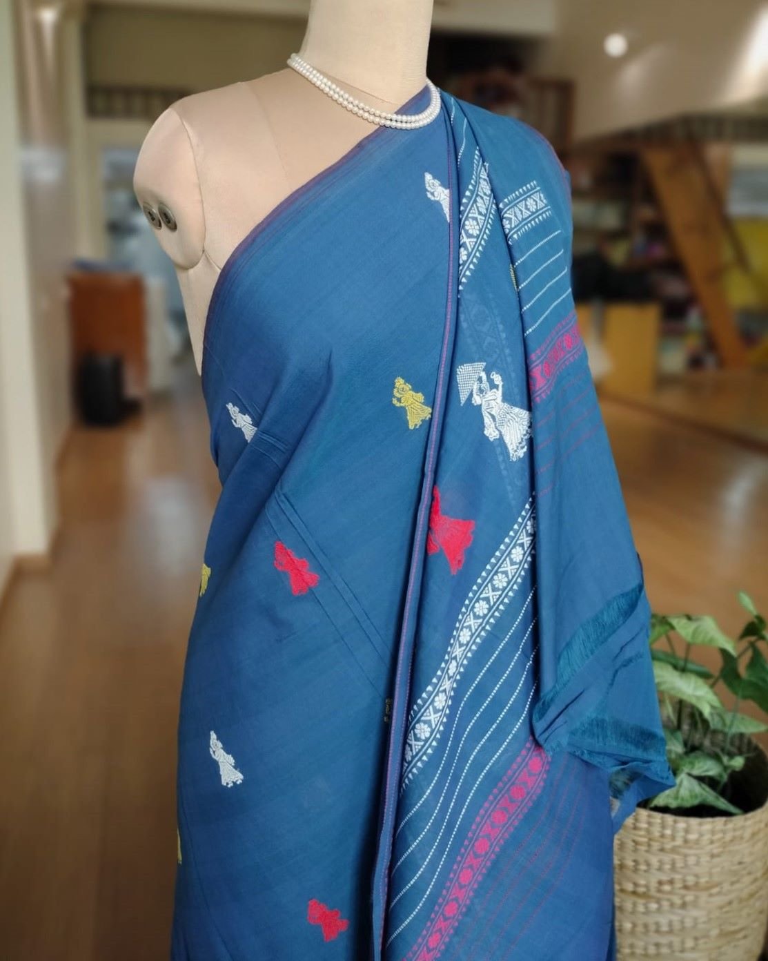 Handwash in cold water and hang to dry. Do not wring the saree.