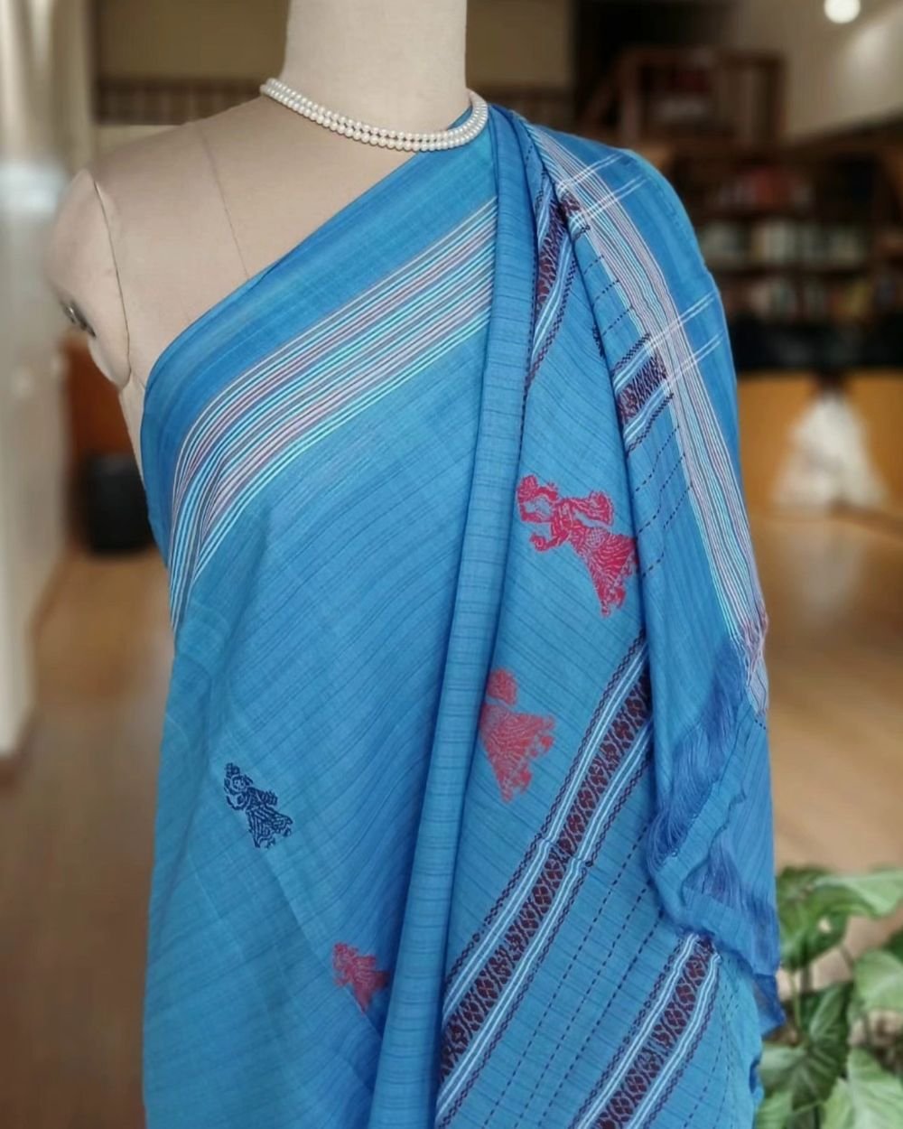 Handwash in cold water and hang to dry. Do not wring the saree.