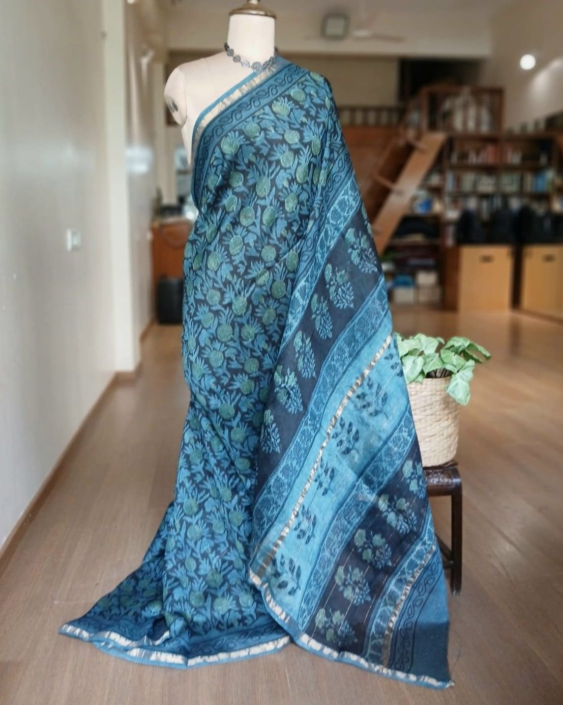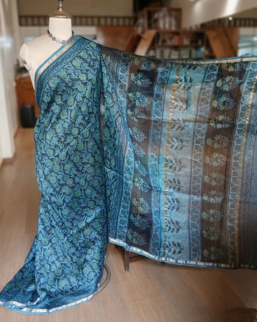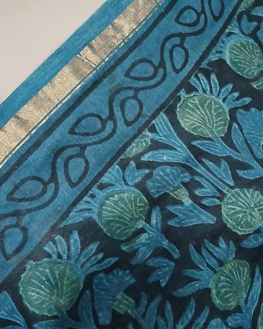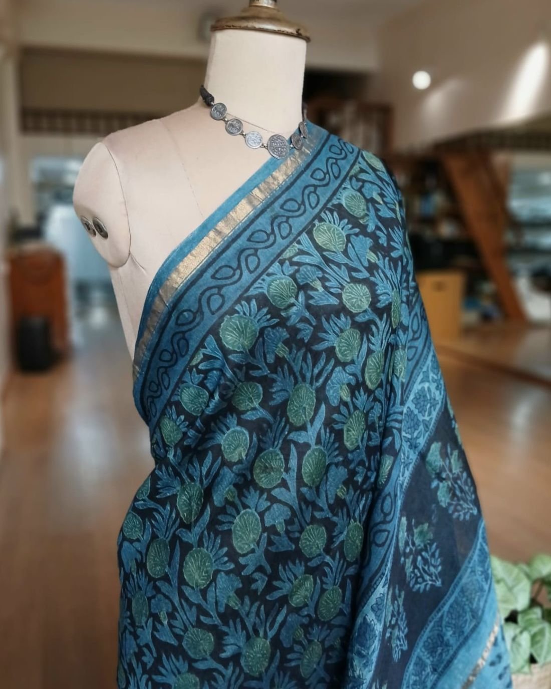 Hand Blockprint Saree on Silk-Cotton – (HBSS0002)