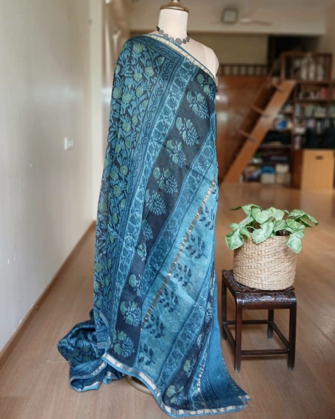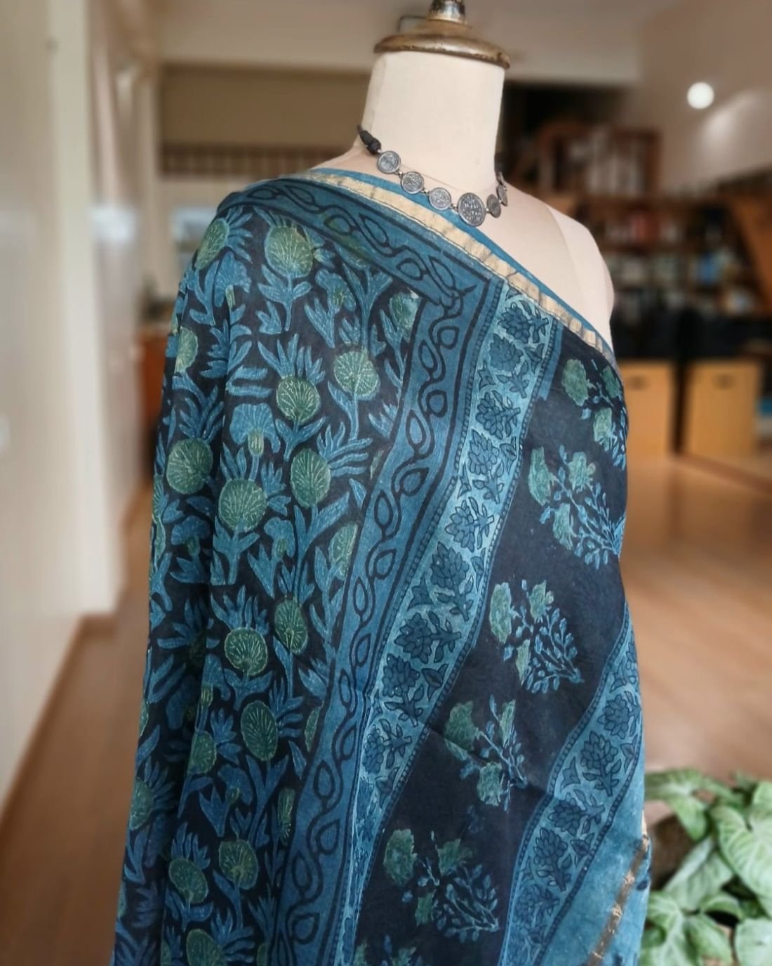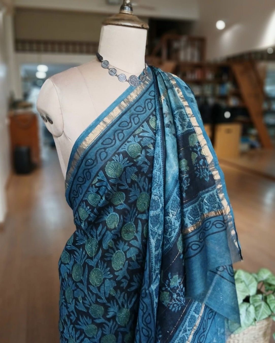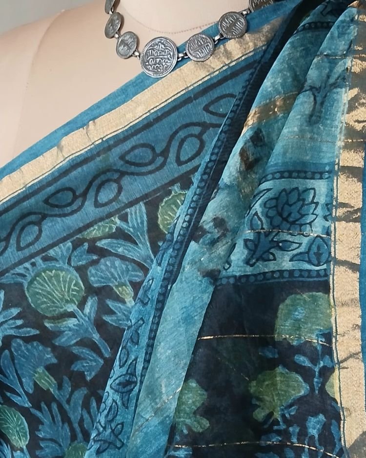 Hand Blockprint Saree on Silk-Cotton – (HBSS0002)