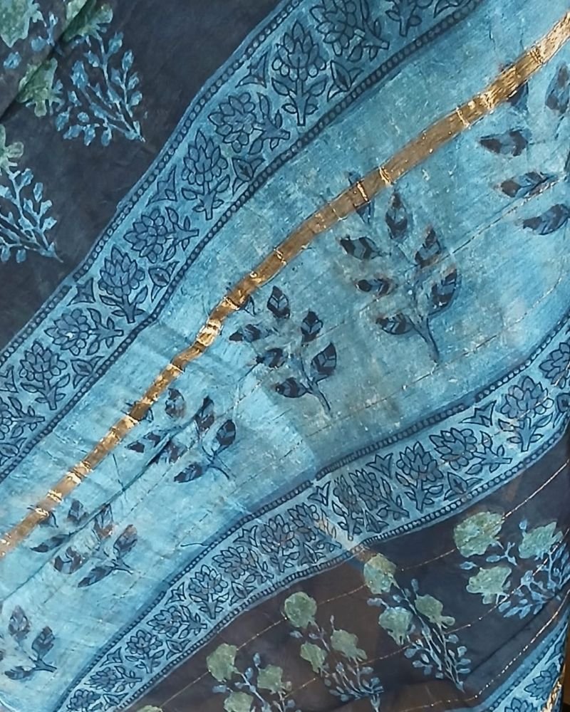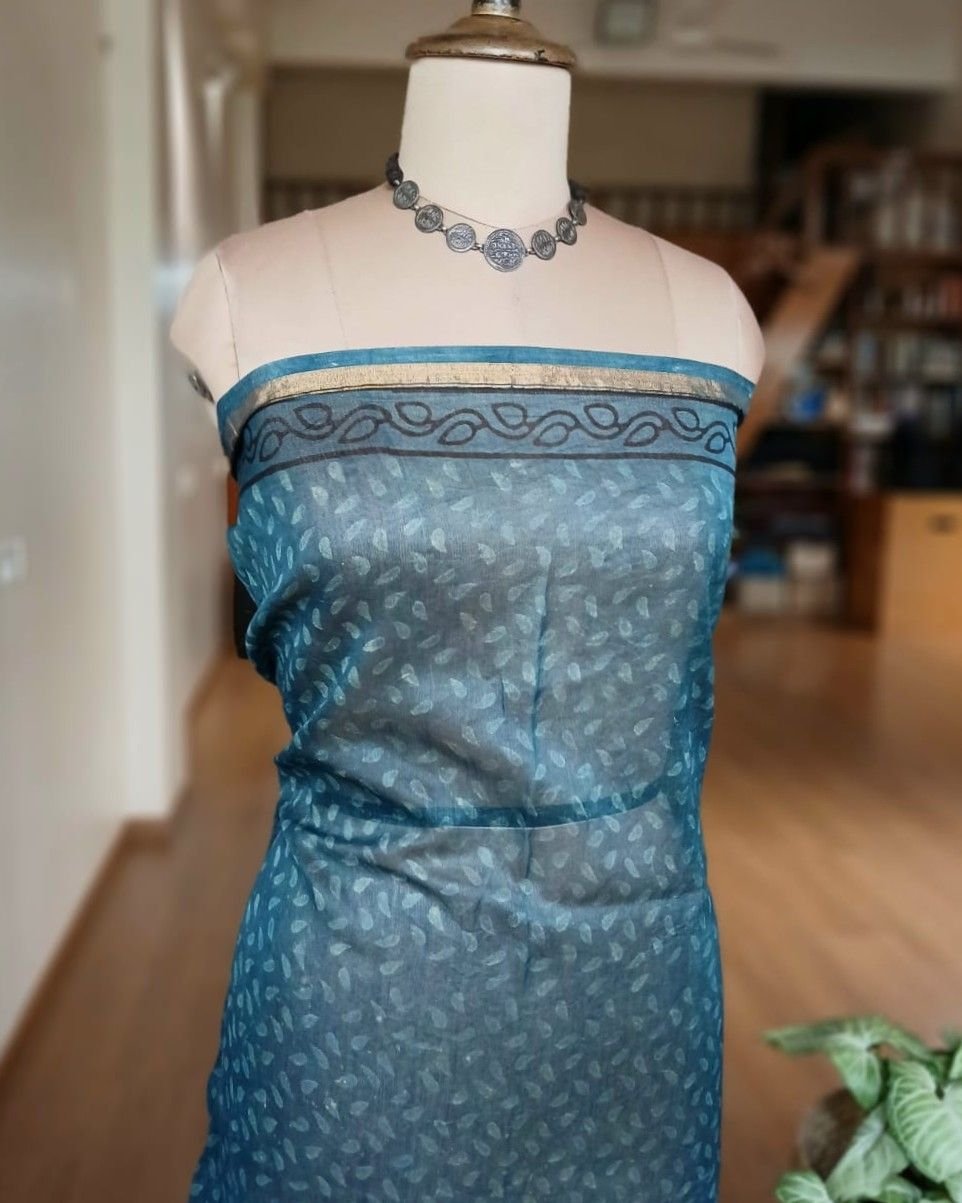 Hand blockprint on Silk-Cotton from Bagru, Rajasthan. See more details below