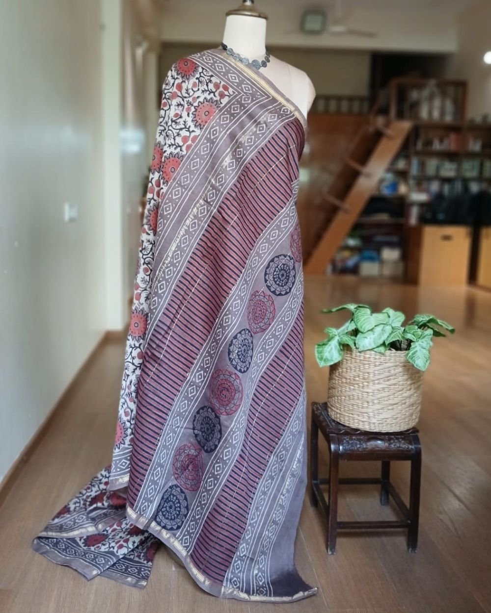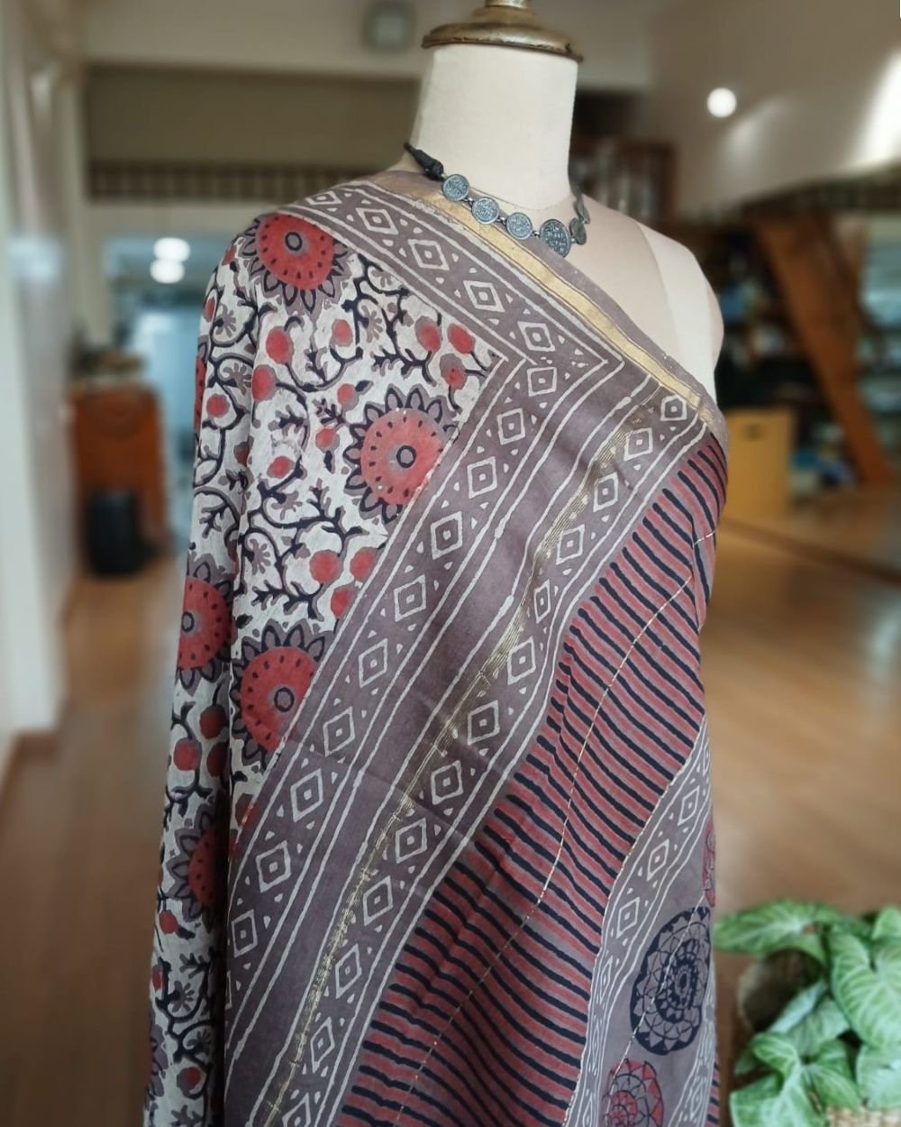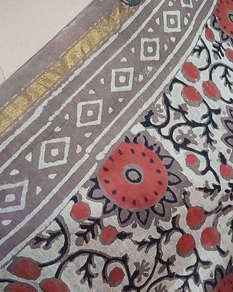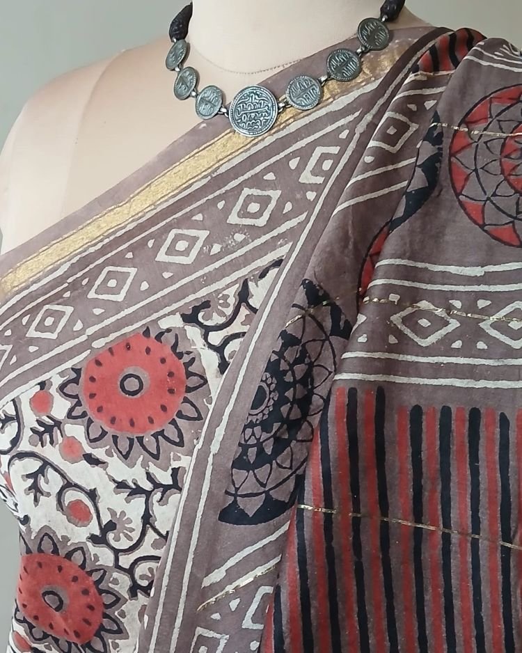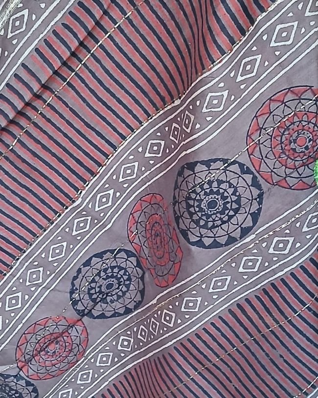 Hand blockprint on Silk-Cotton from Bagru, Rajasthan. See more details below