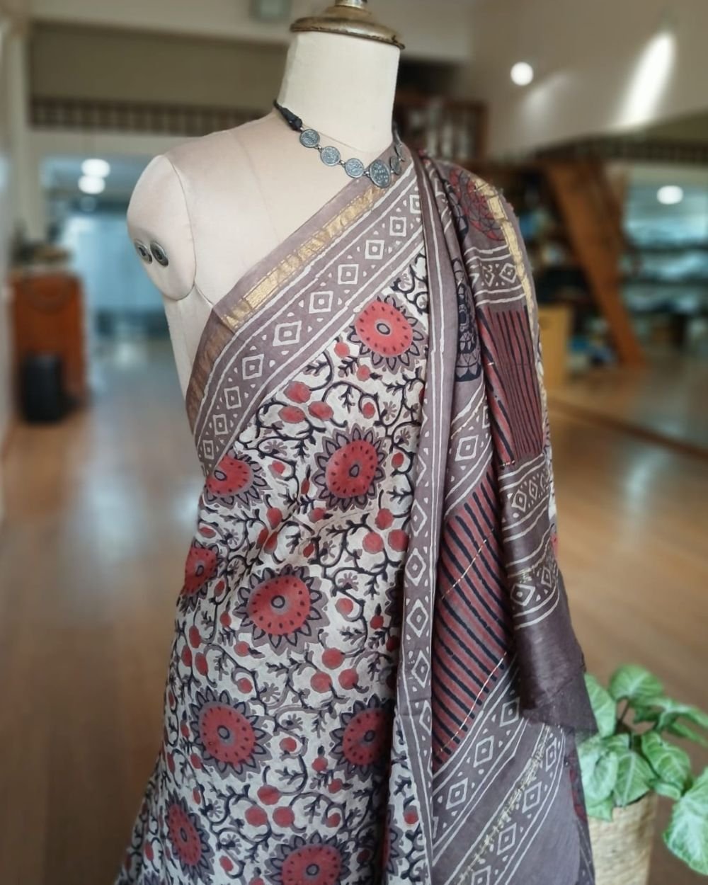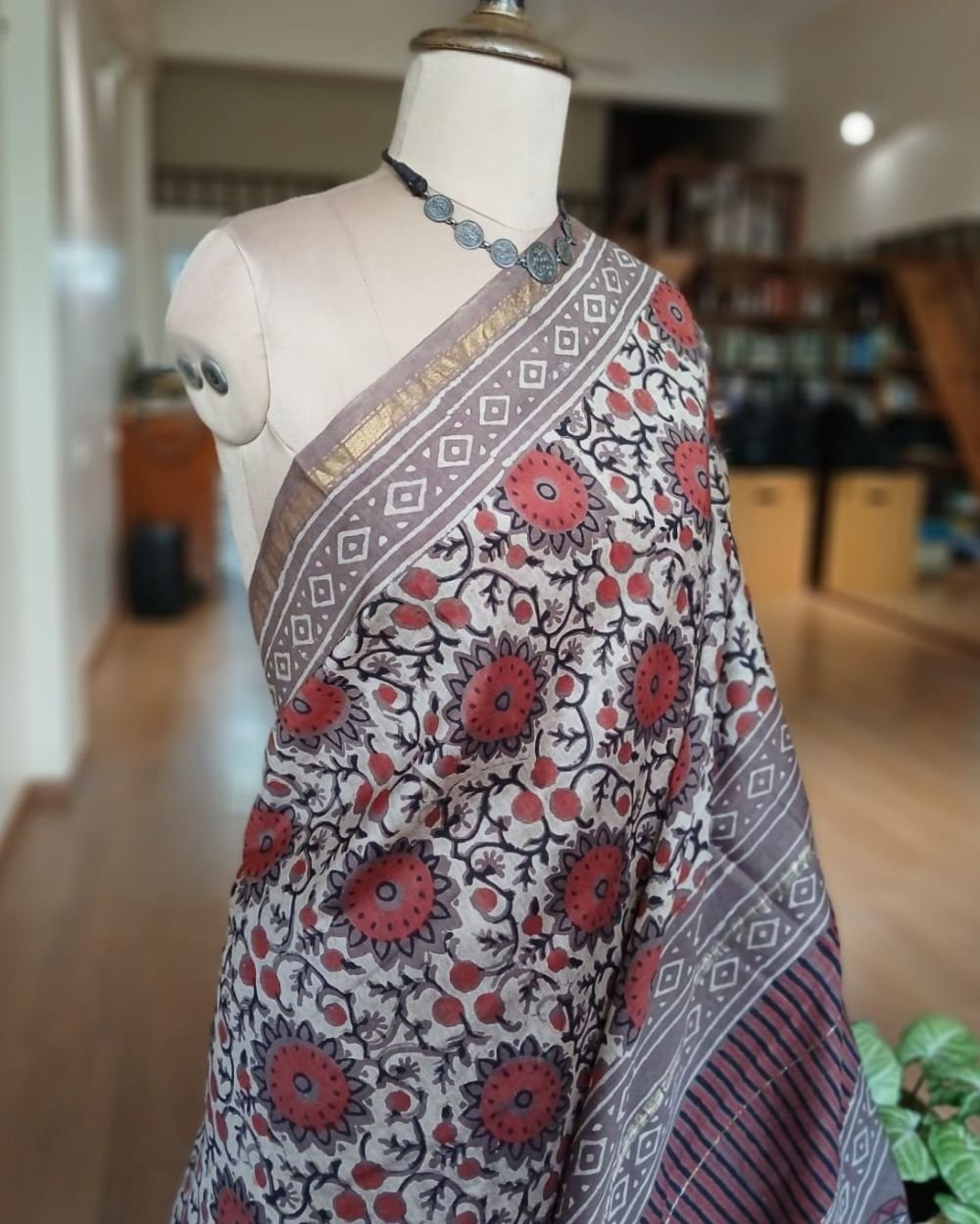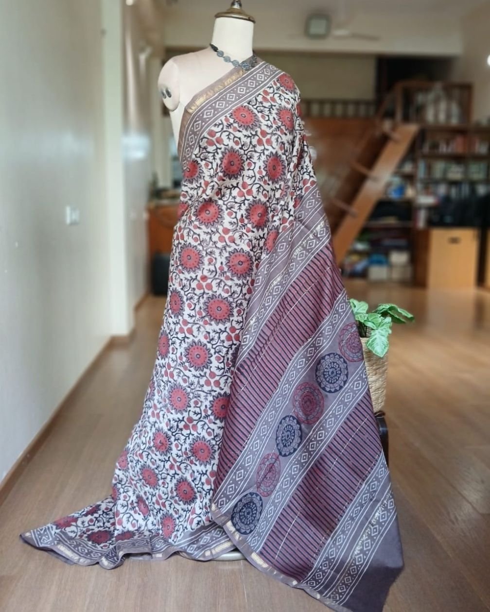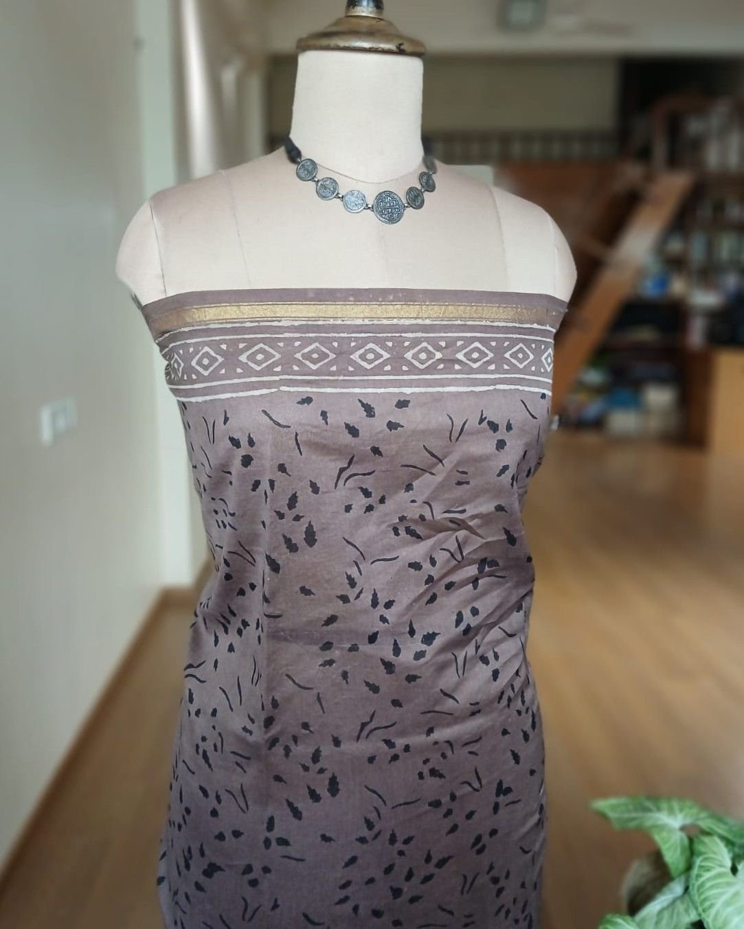 Hand blockprint on Silk-Cotton from Bagru, Rajasthan. See more details below