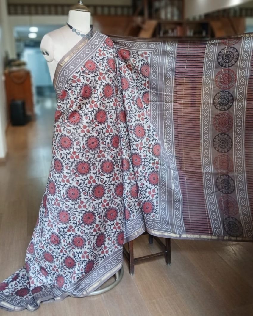 Hand Blockprint Saree on Silk-Cotton – (HBSS0003)