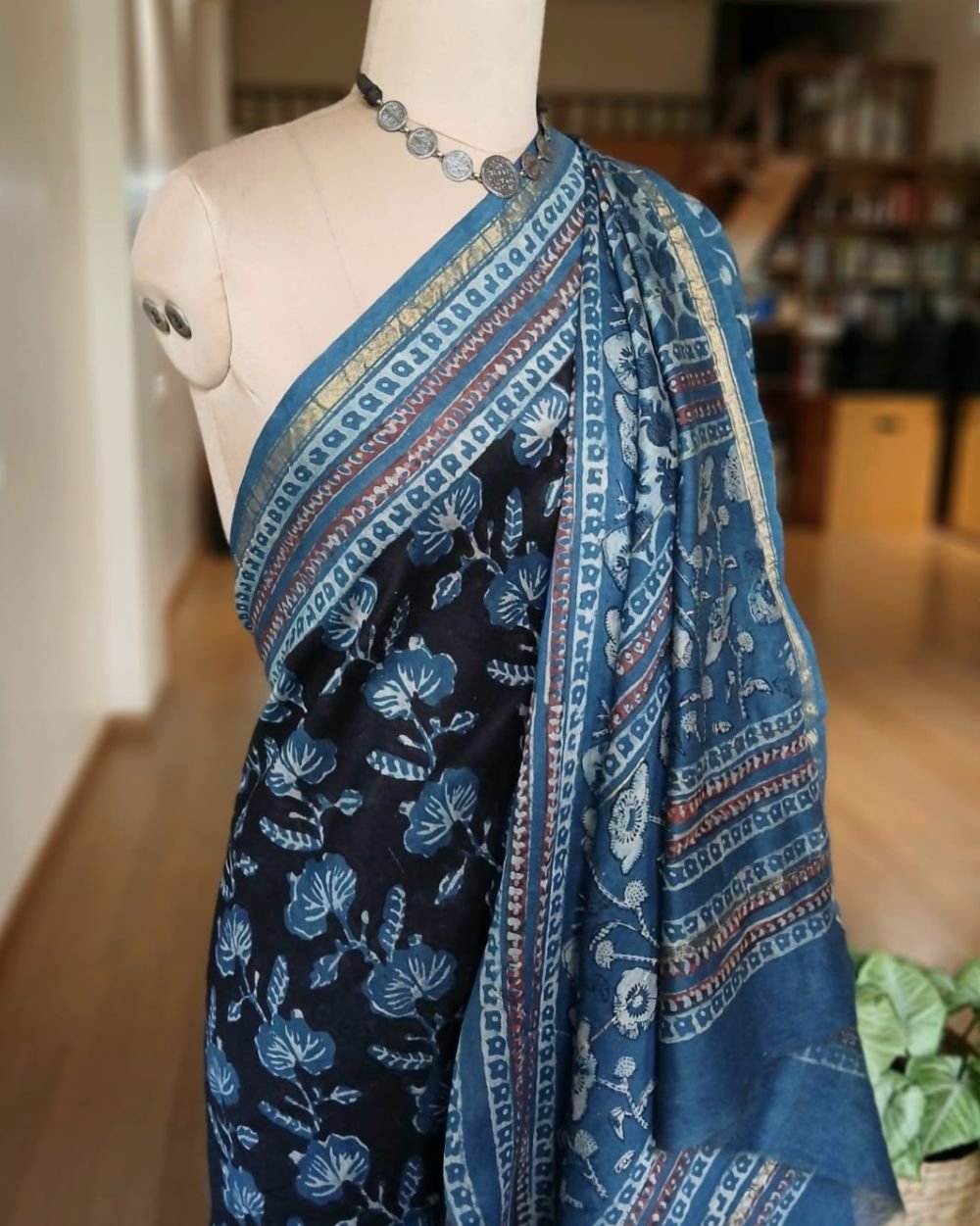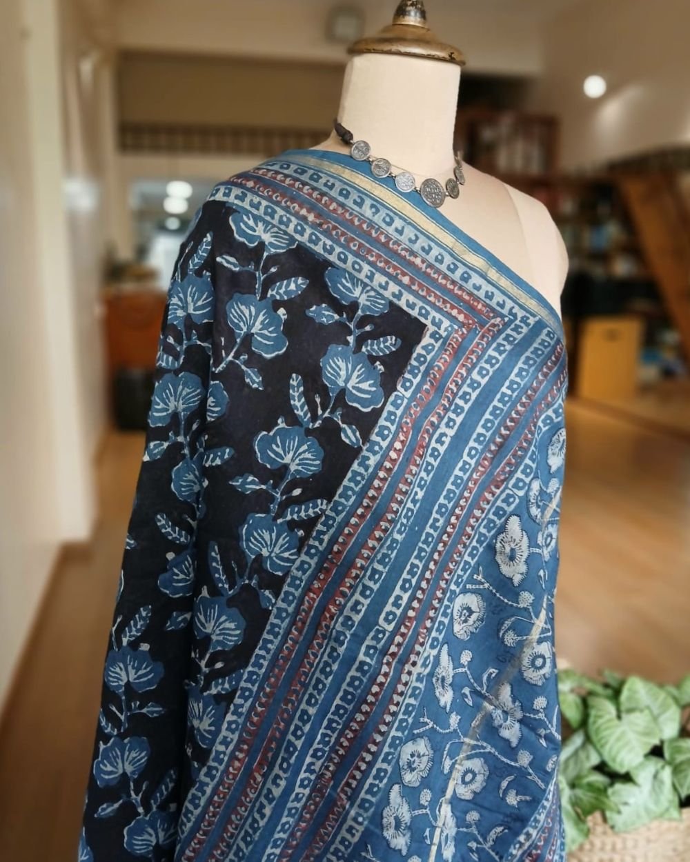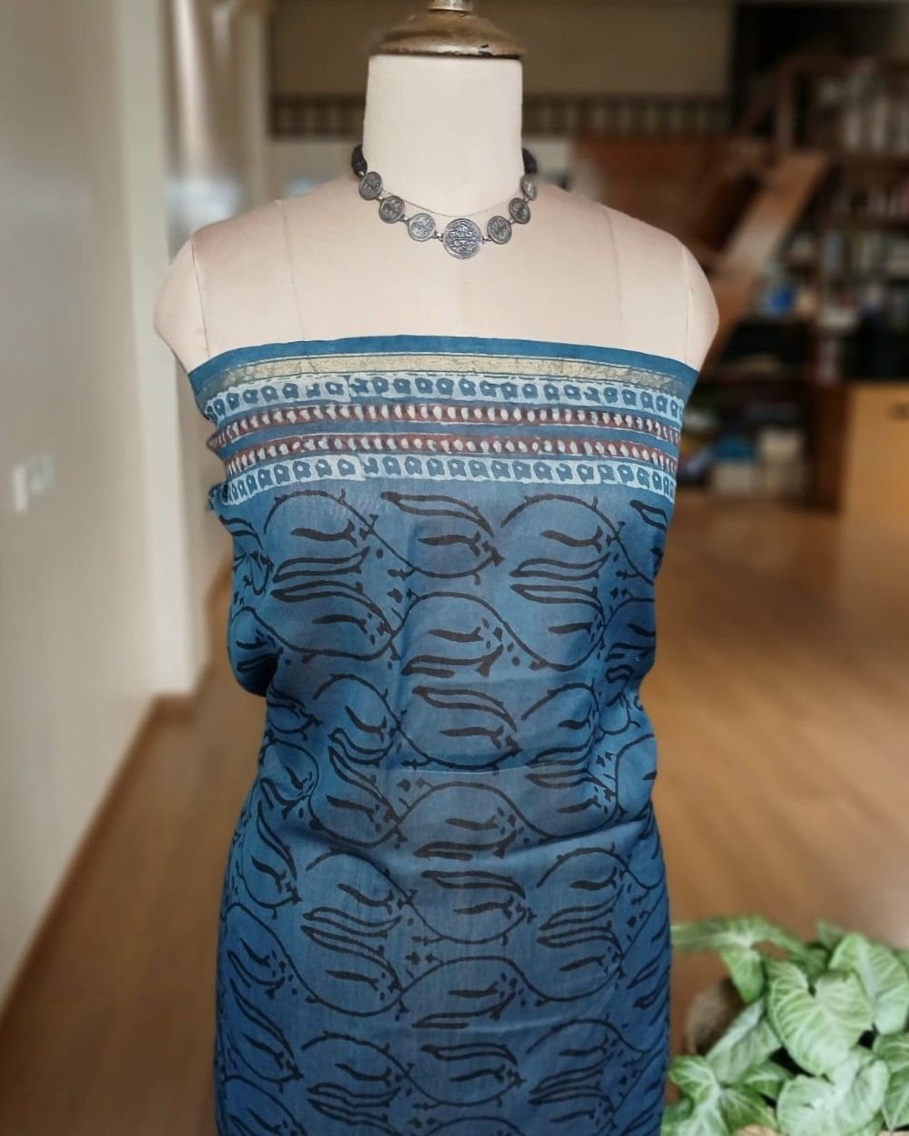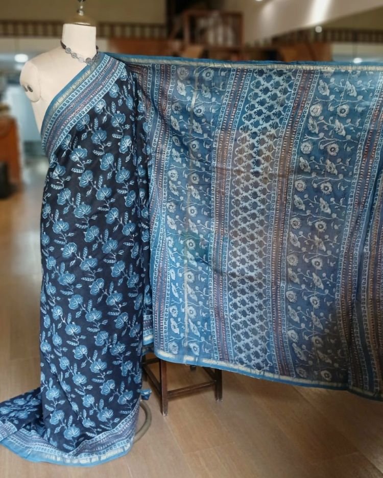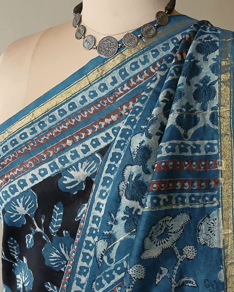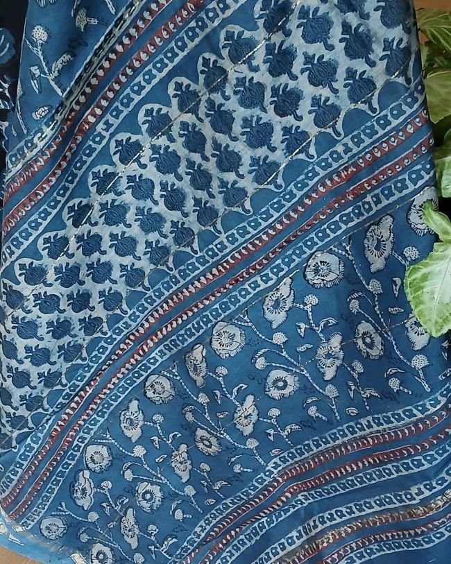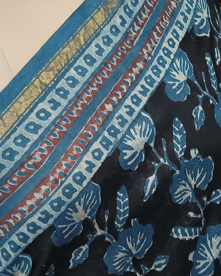 Hand blockprint on Silk-Cotton from Bagru, Rajasthan