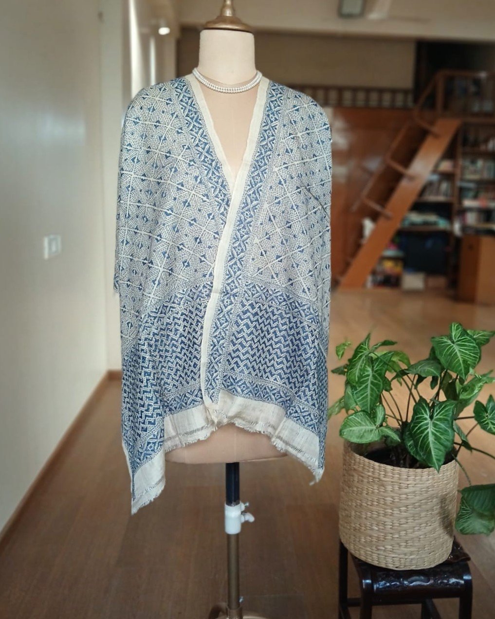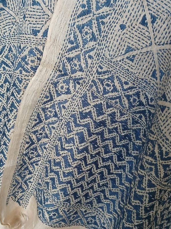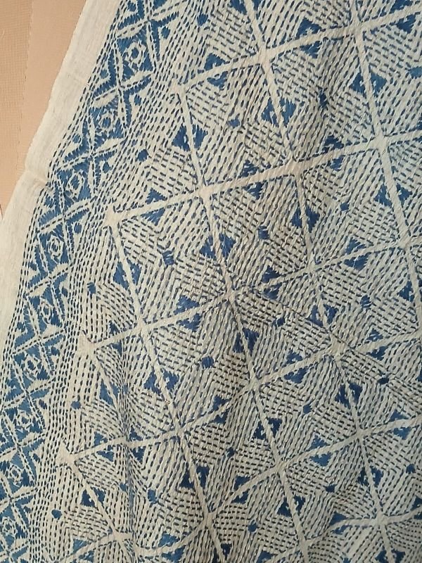 Tussar silk stole with kantha hand-embroidery, made in Santiniketan.