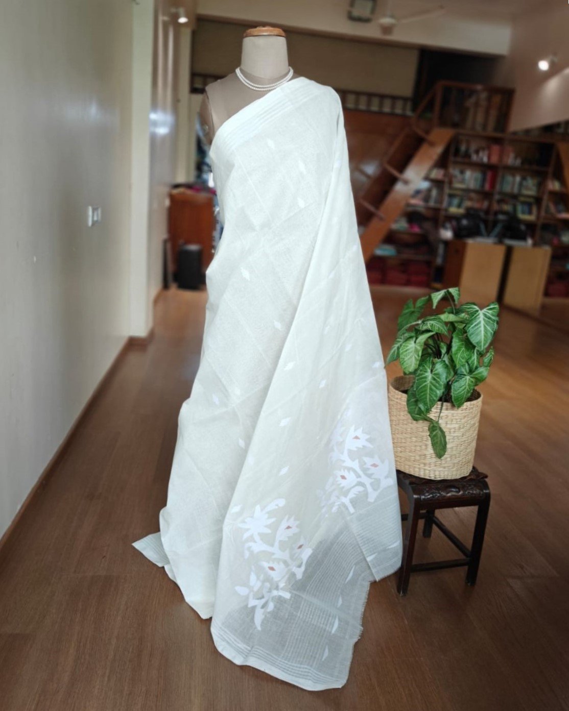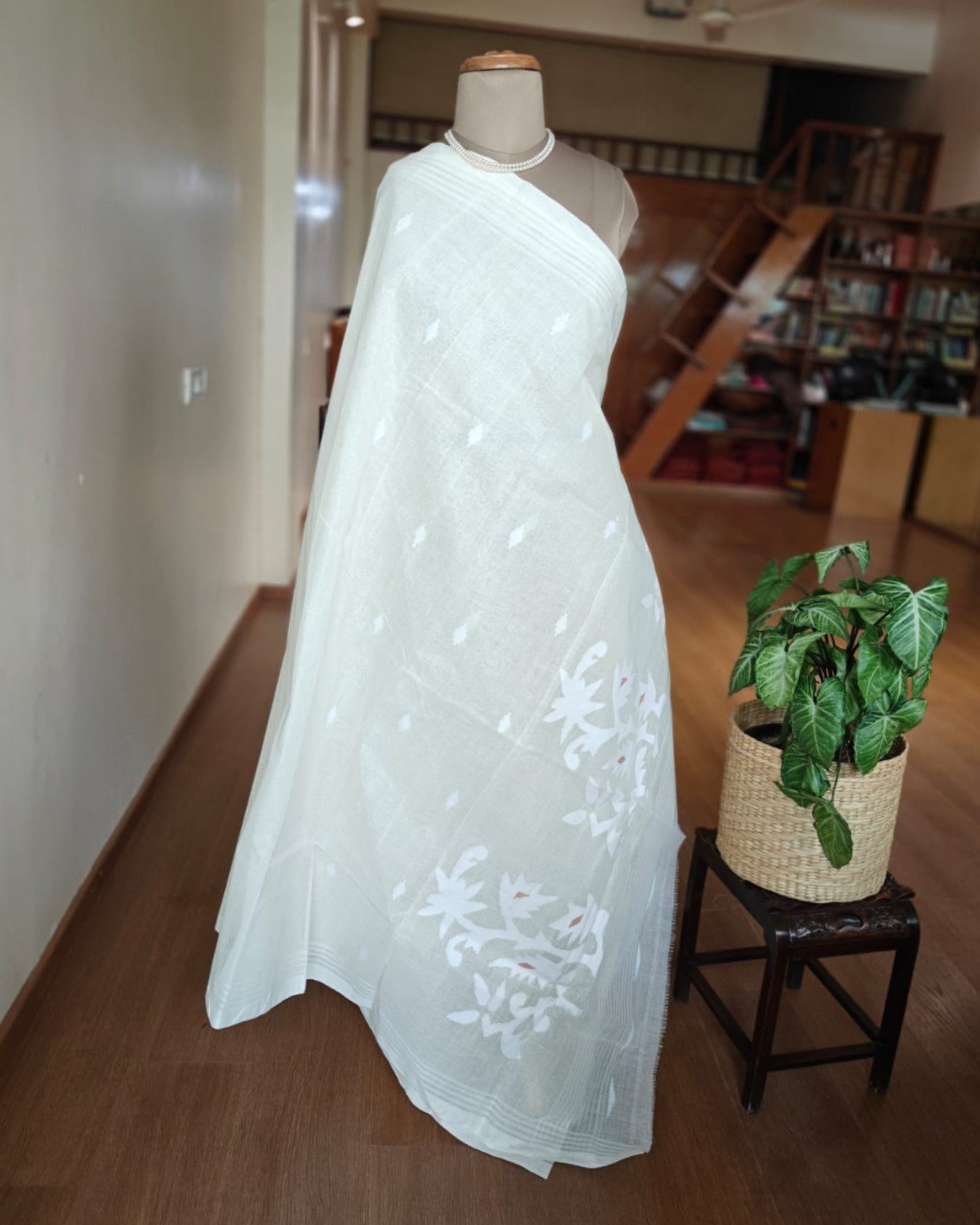 Jamdani Handweave in Crisp Cotton from Phulia in West Bengal.