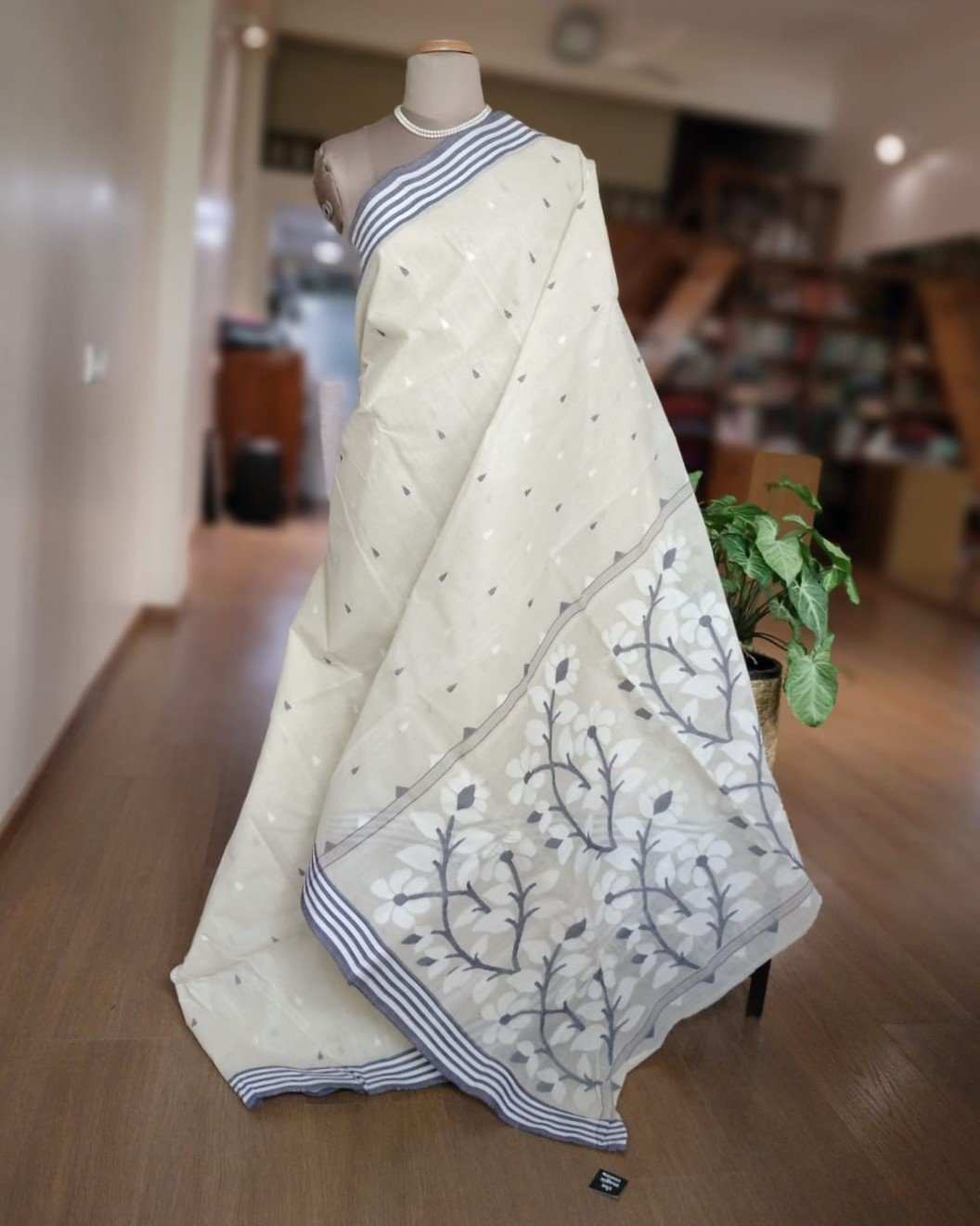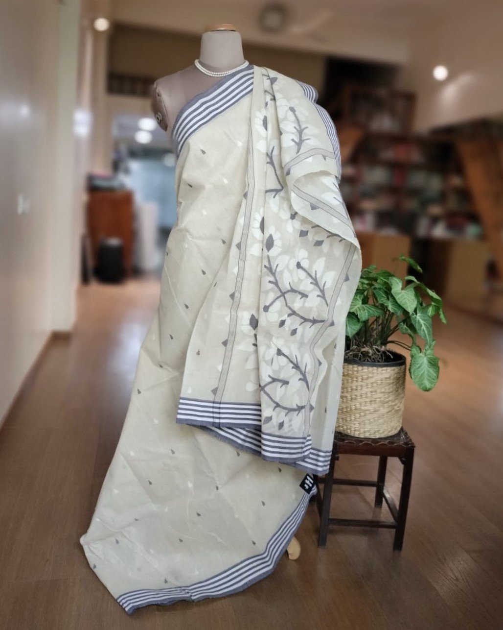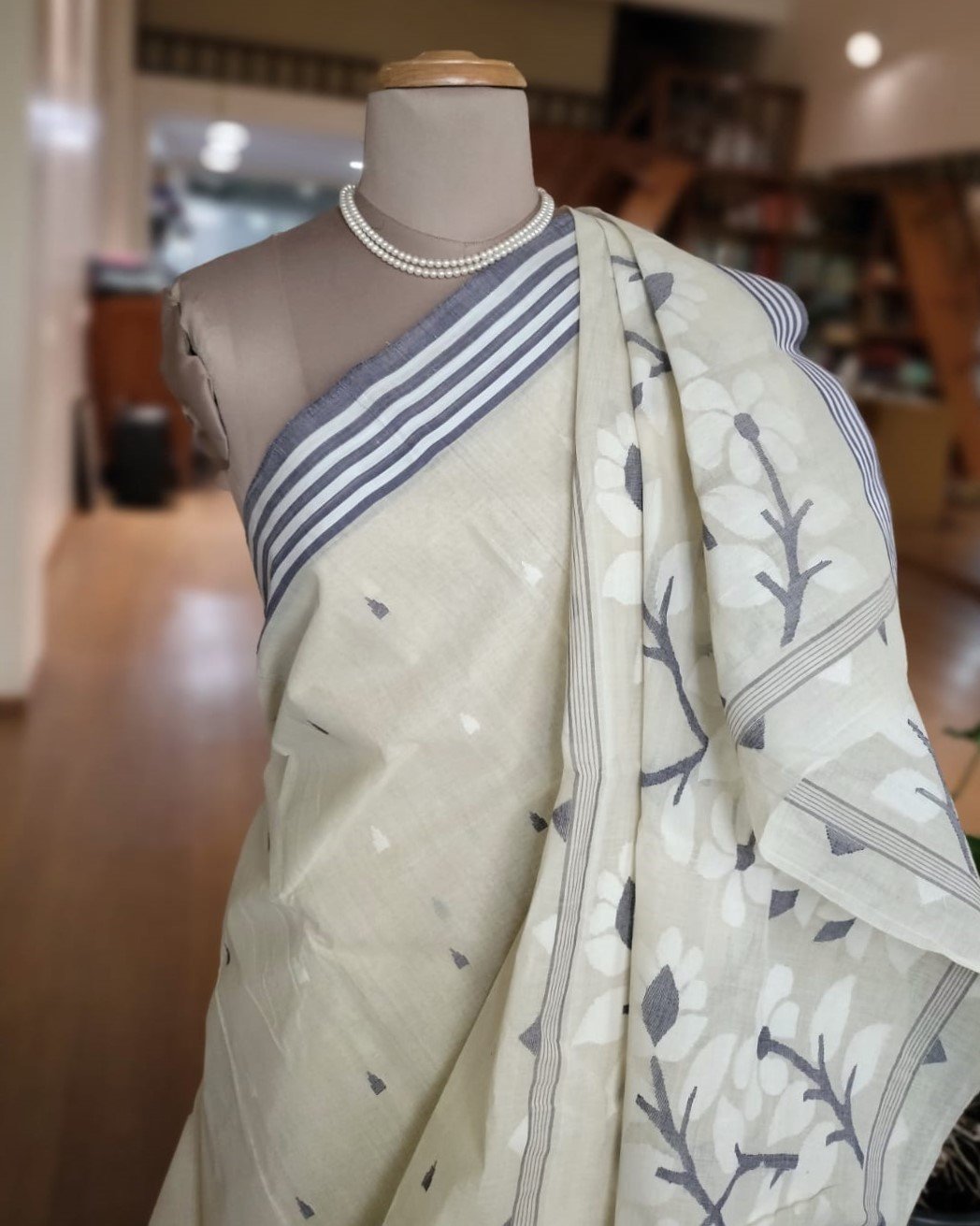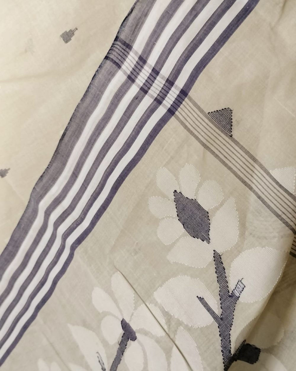 Jamdani Handweave in Crisp Cotton from Phulia in West Bengal