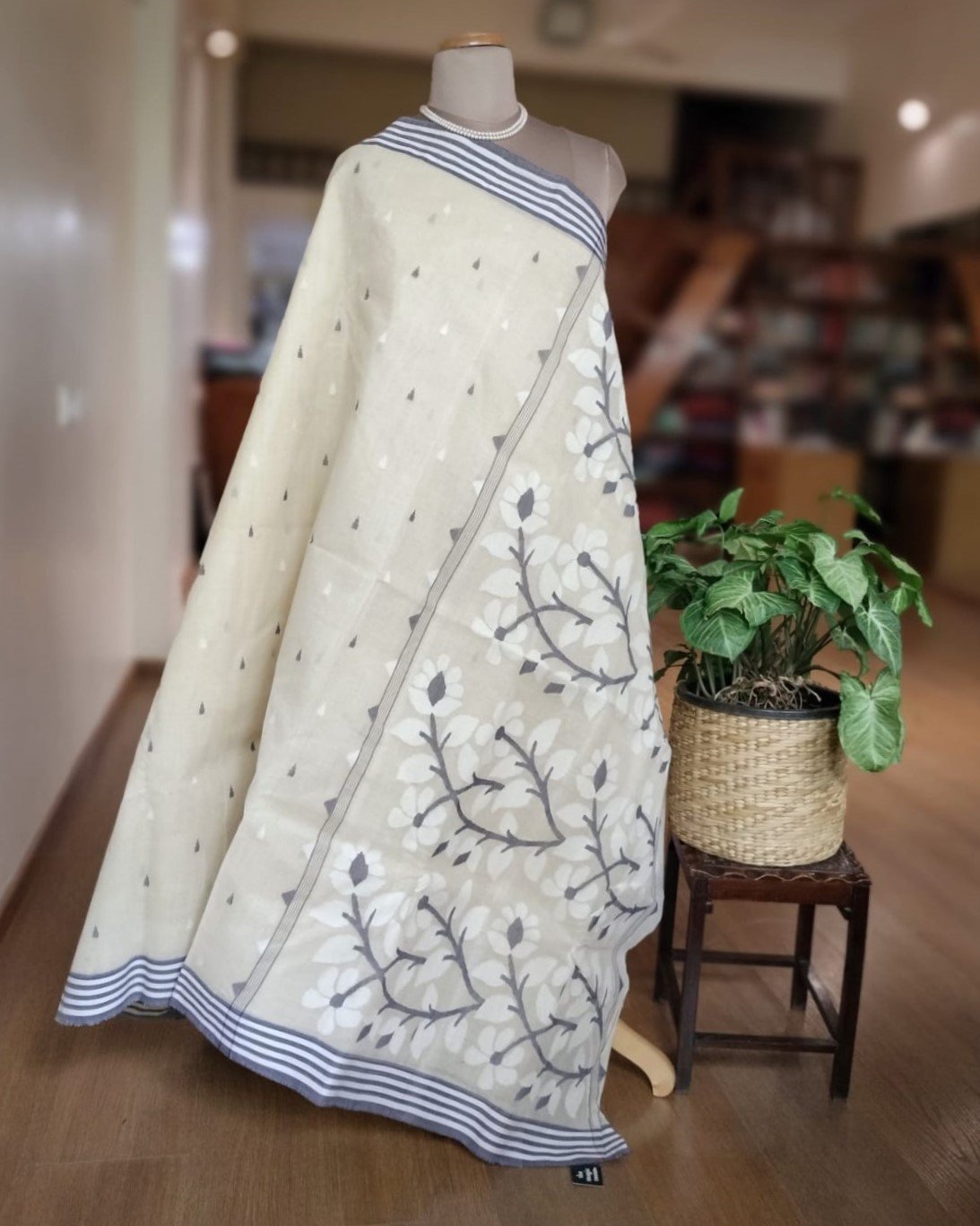 Jamdani Handweave in Crisp Cotton from Phulia in West Bengal.