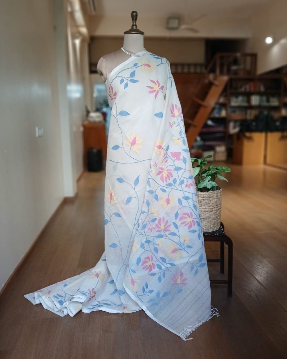 Hand Jamdani from Phulia with all over work in the body and palla.