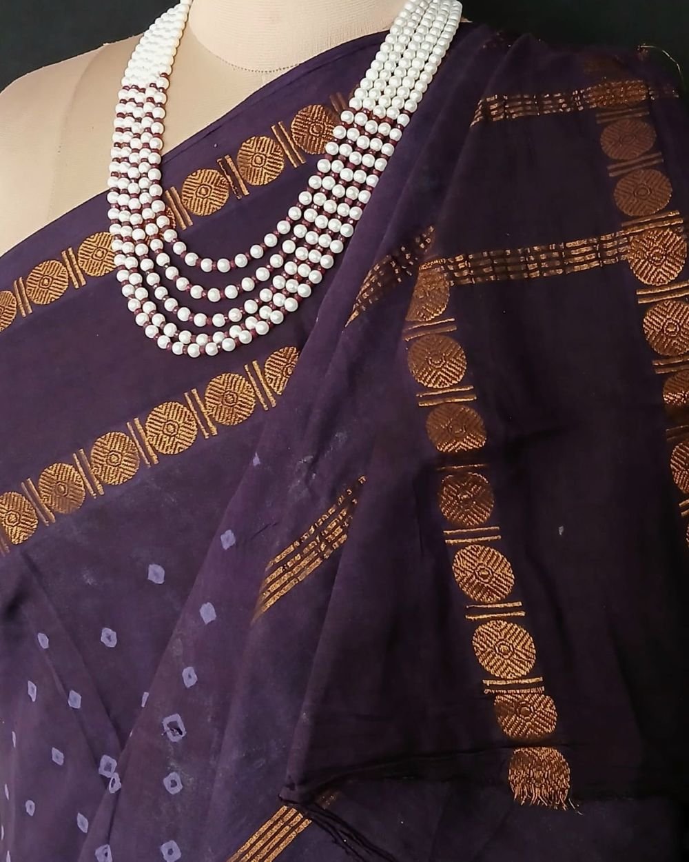 The base saree is powerloom, woven in the nearby area.