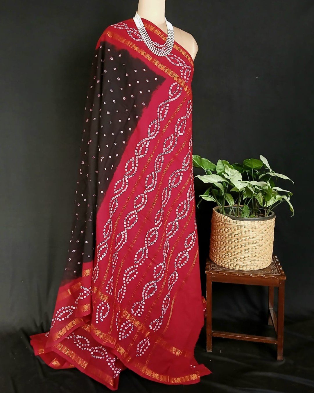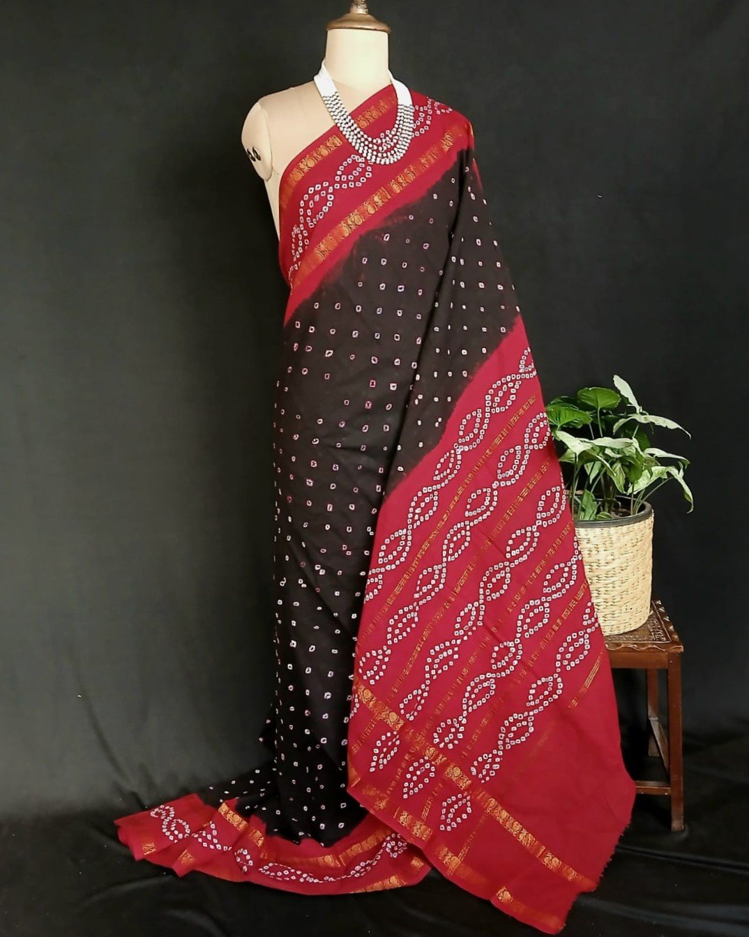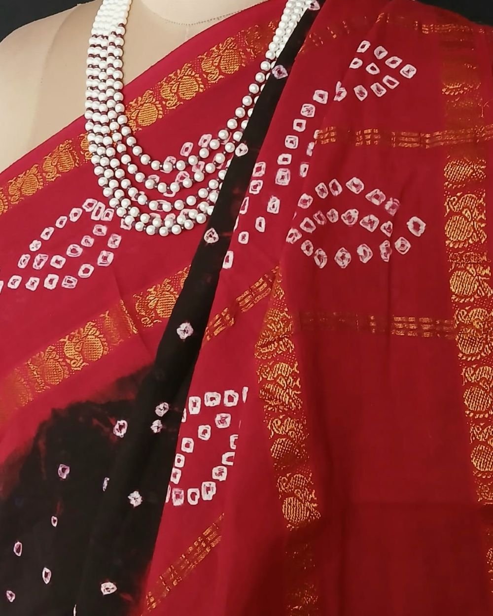 GI Tagged Hand-knotted Madurai Sungudi Cotton Saree. The base saree is powerloom, woven in the nearby area. The saree has zari border and palla, with blousepiece.
