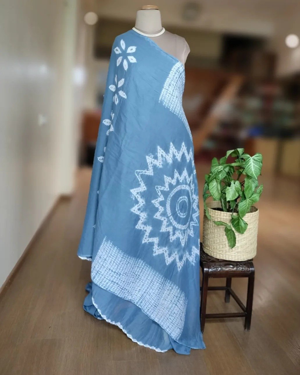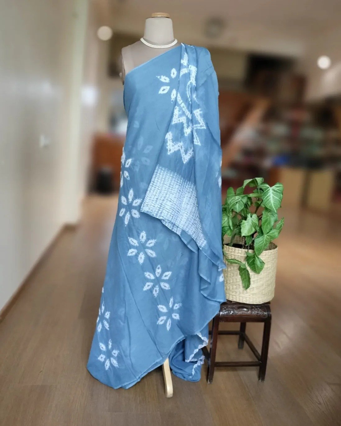 Hand Shibori on Mul Cotton Saree using the Nui Shibori technique