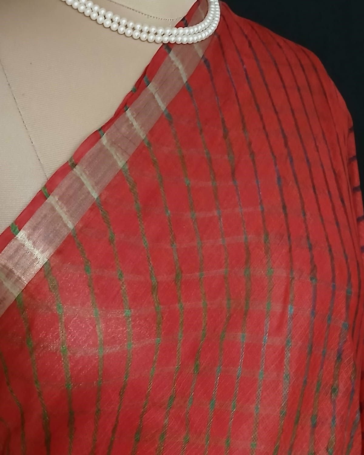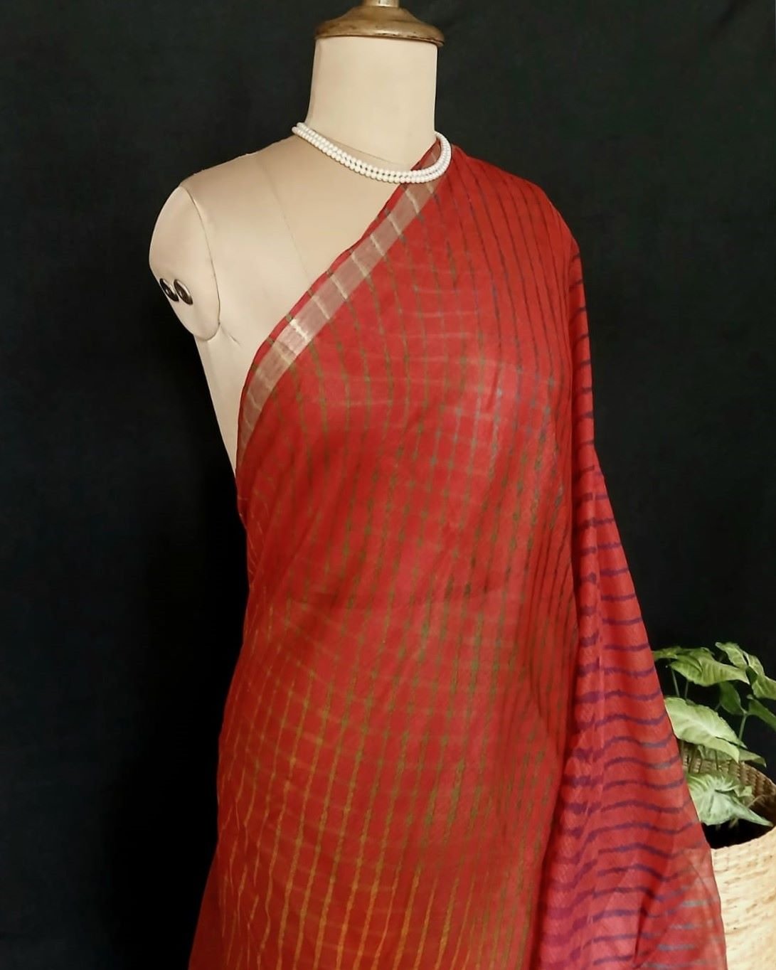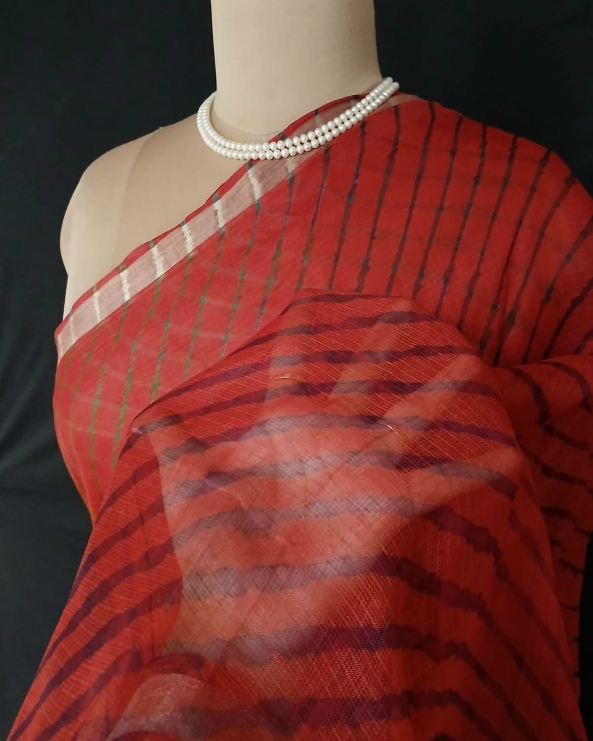 Hand tie-dye Leheriya on Kota Silk. Made in Jaipur in a lovely combination, showing the artisan’s skilled understanding of colour interplay.