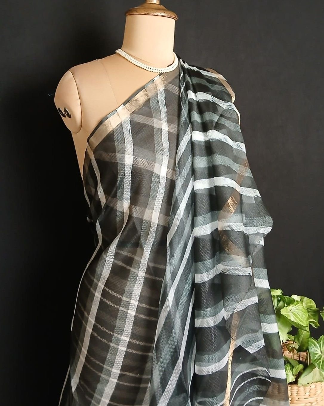 Kota Silk is not suitable for blouse making and these sarees will probably look better with a plain blouse anyway. Leave the blousepiece in the saree to get more pleats and a long graceful palla.