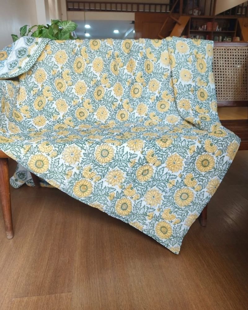 Handblock Print Reversible Double Razai from Jaipur. Very soft mul cotton exterior, with cotton filling.