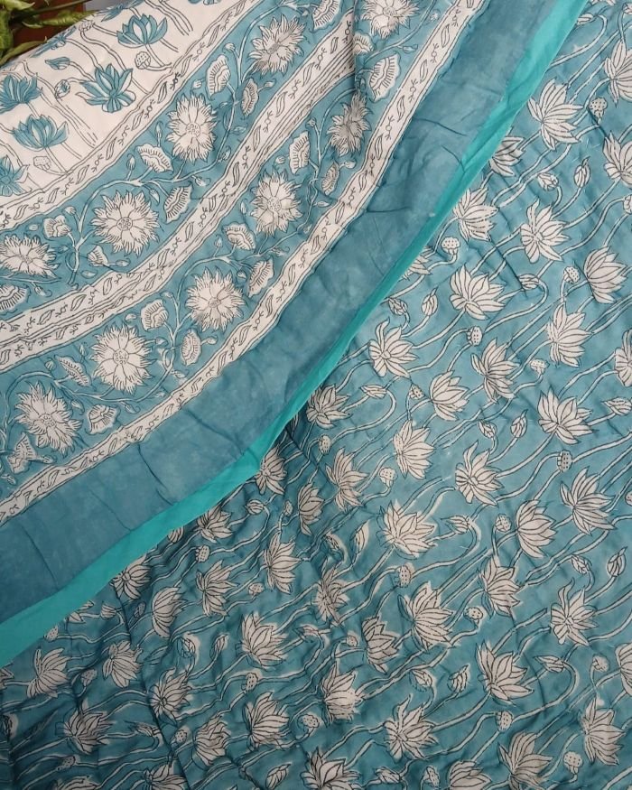 Super-soft reversible double razai from Jaipur. Very soft mul cotton exterior, with cotton filling. Handblock printed in Rajasthan.