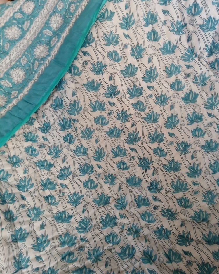 Handblock Print Reversible Double Razai from Jaipur. Very soft mul cotton exterior, with cotton filling.